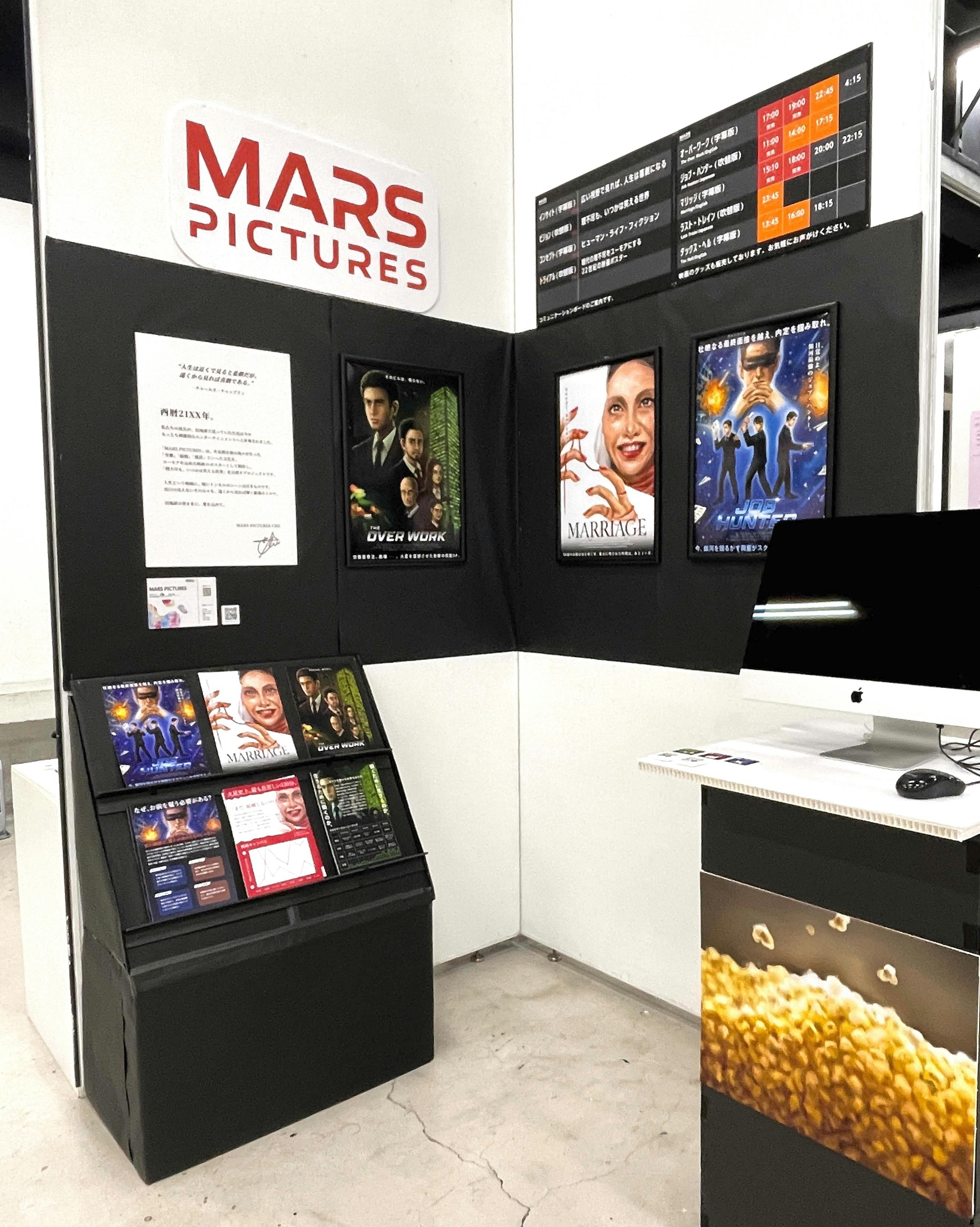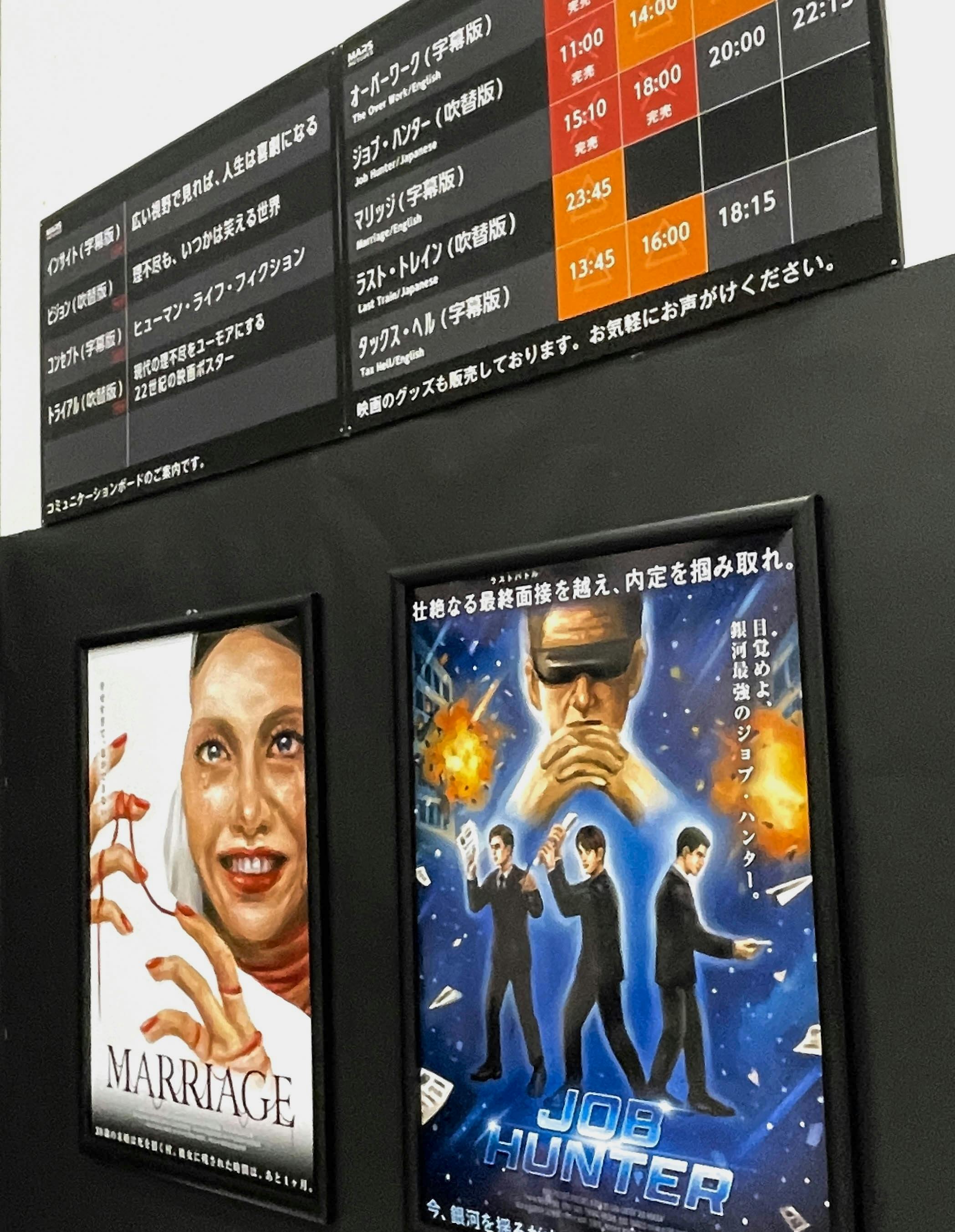 暗幕と上映スケジュール、ポスターが無事に設営完了。