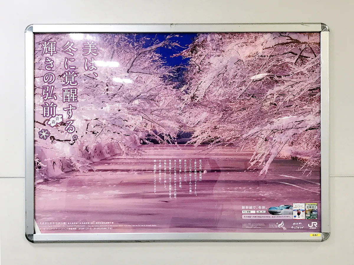 この度「冬に咲くさくらライトアップ」の写真をJR東日本さまの駅ポスターにご採用いただきました!
