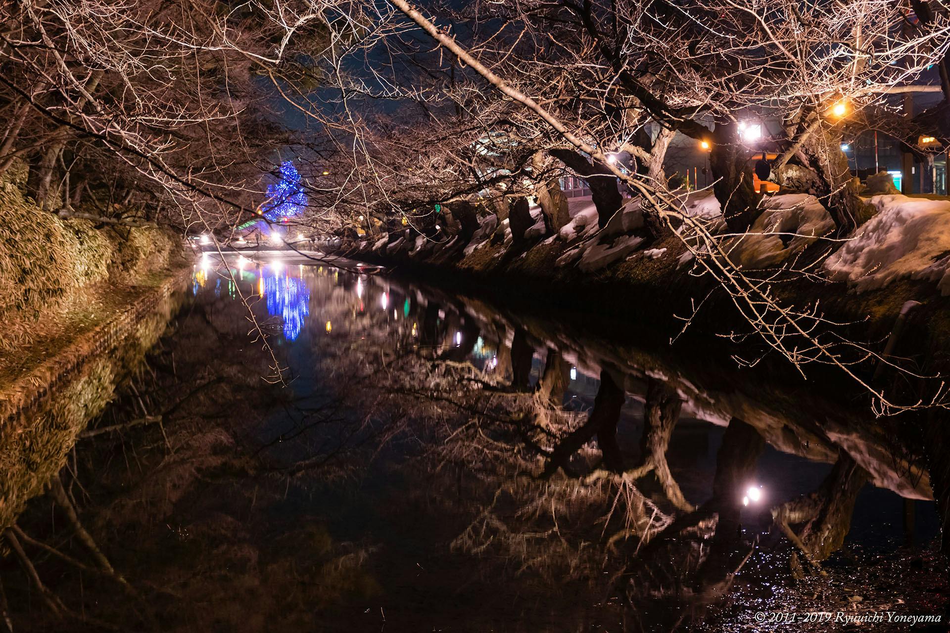 2019/03/03 20:28プロジェクトオーナーの米山です。お世話になっております。 2018年12月1日から3ヶ月間にわたって実施してきました本ライトアップですが、2/28(木)を持って無事終了いたしました。この間、市内外より大変多くのみなさまにお越しいただき、厚く、厚く、感謝しております。弘前や青森県では、2月後半から一気に春めいたこともあり、雪が全くない状態が続きました。2月前半はたくさん降っただけに、その変わりようにびっくりでした。(2月後半にお越しいただいた方、見頃にならず申し訳ありませんでした)さて、ライトアップ最終日の2/28(木)に、ささやかながら消灯式を実施いたしましたので報告いたします。時刻は21時40分ごろ。市民会館から見ると、お濠の氷が解けて水鏡になっていました。雪のなくなった歩道を歩いて追手門前へ向かうと、追手門広場で実施されていたエレクトリカルファンタジーが変わらずの美しさで出迎えてくれました。そして、いつもの追手門前のこの場所。「雪の花筏」が、辛うじて残っていました。計7名のみなさまがお集まりいただいたところで、私から簡単に挨拶させていただくと消灯時刻の22時に。定刻に消灯となりました。最後に、本プロジェクトにご支援いただいたりご拡散いただいたみなさま、会場まで足をお運びいただいたみなさま、ご意見・ご感想などお伝えいただいたみなさま、その他すべての方、大変、大変、ありがとうございました。今シーズンのライトアップは終了いたしましたが、来シーズンもさらなる改良を加えた上での実施を目指してまいります。その節は、またまたご支援やご拡散をお願いするかもしれませんが、何卒よろしくお願いいたします。 もっと見る消灯式のお知らせ