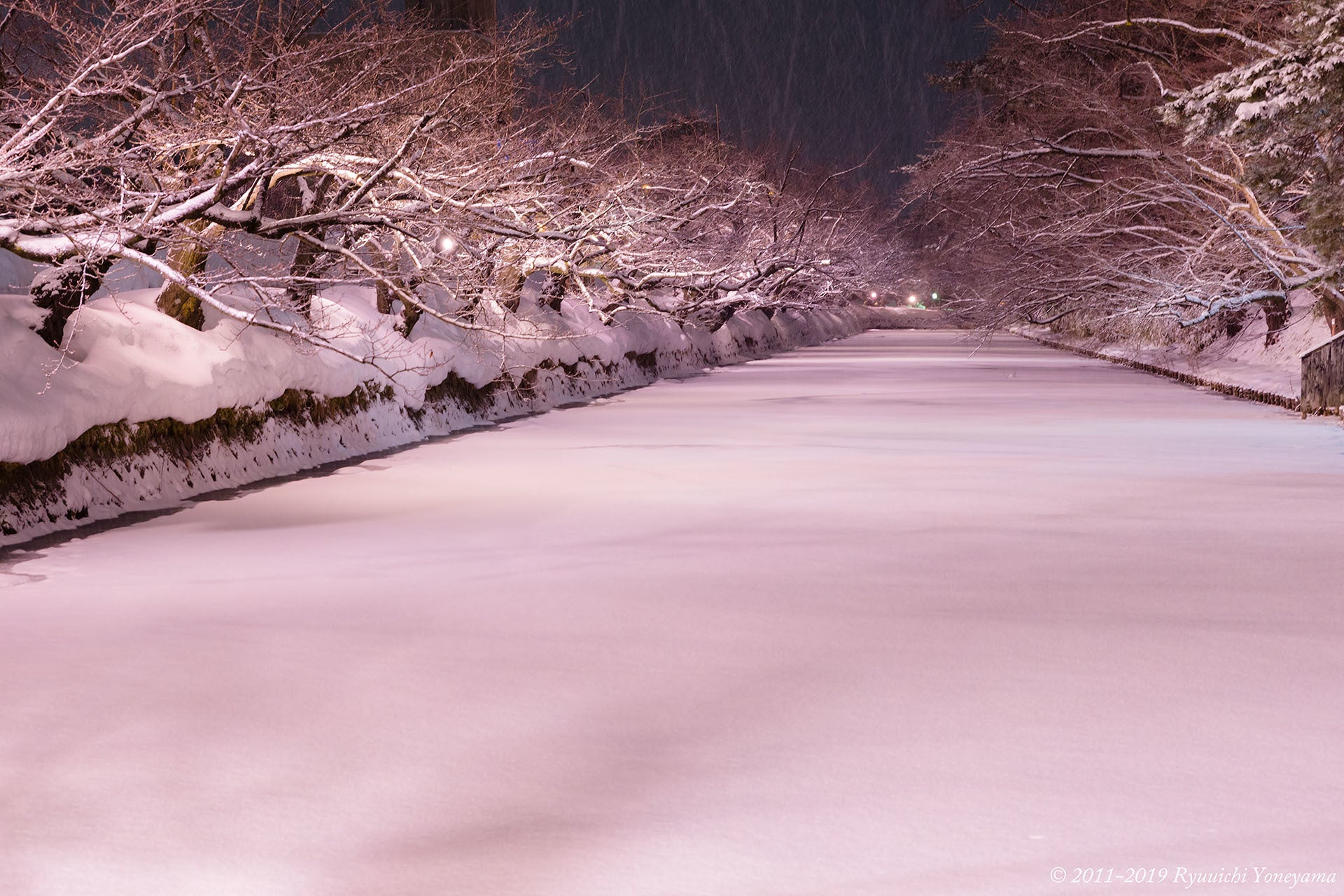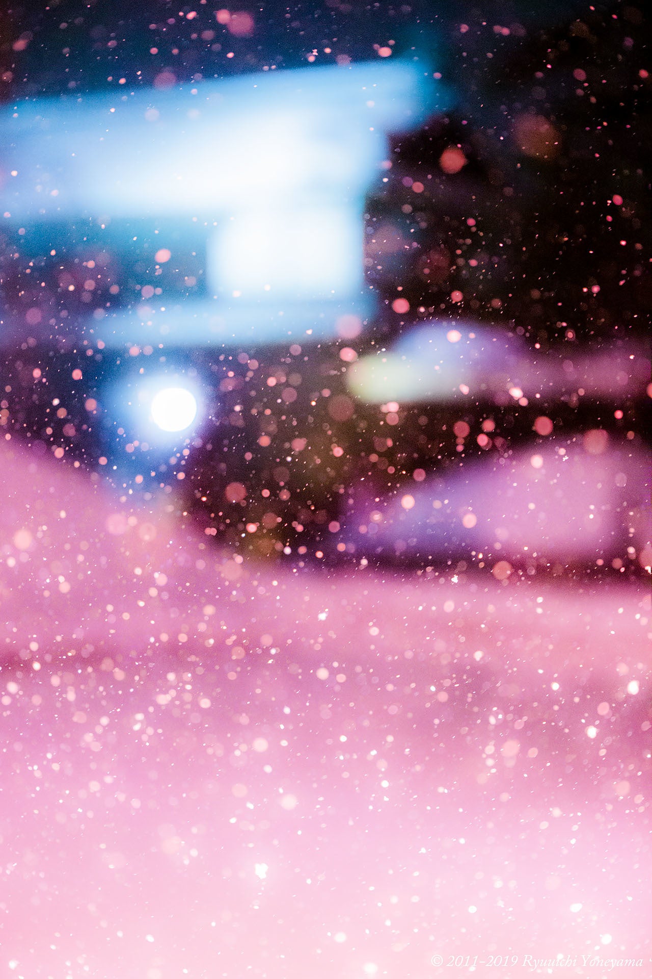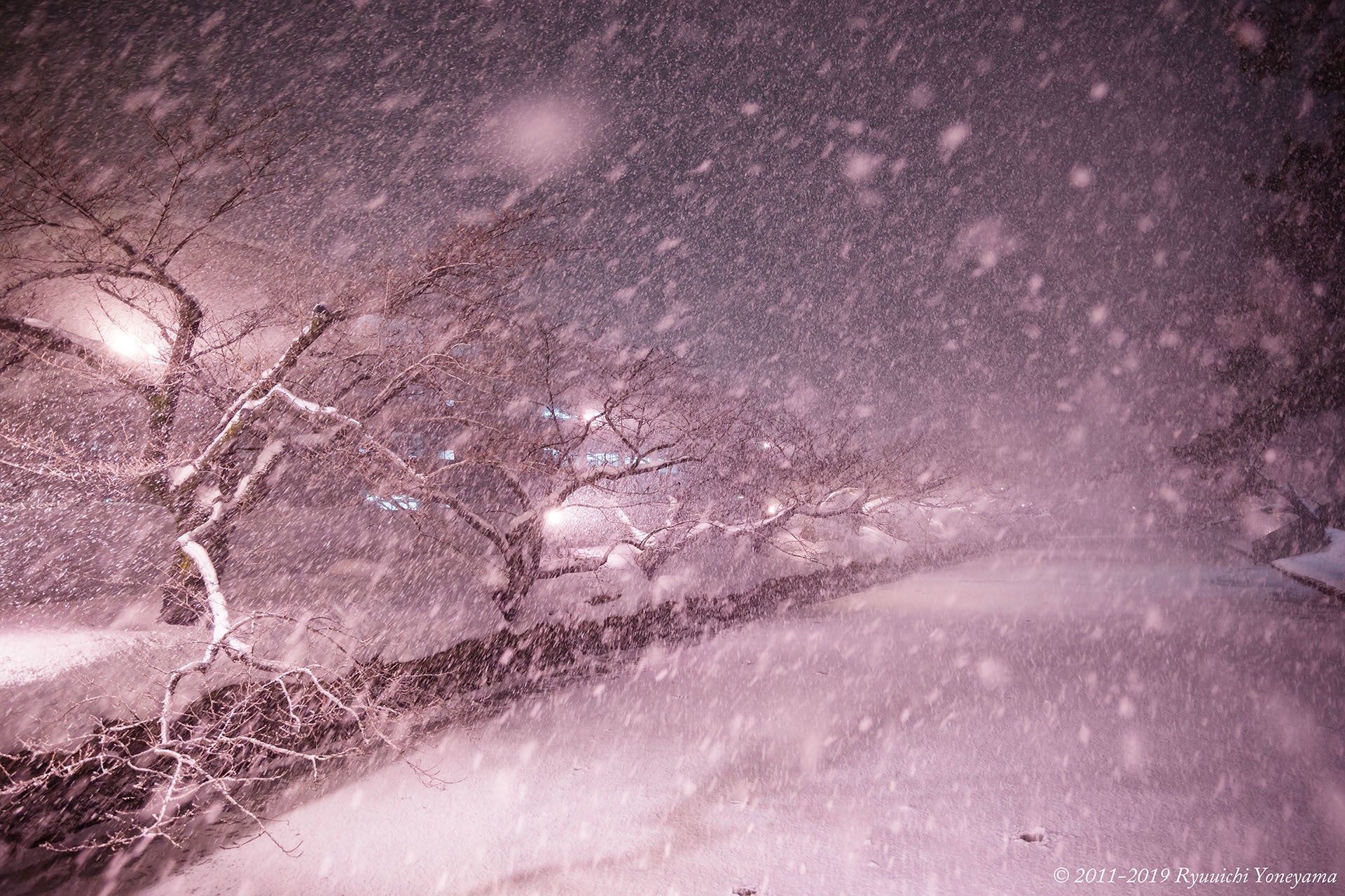 22時の消灯間際には大粒の吹雪となり、八重桜のさくらふぶきのようでした。