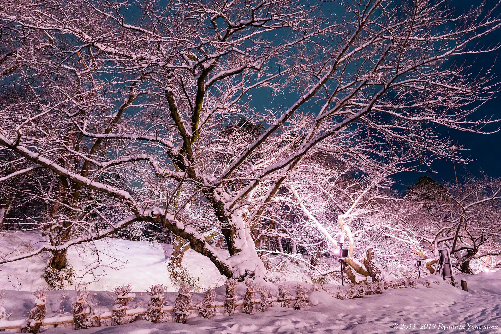 「見頃の本ライトアップと岩木山」も撮ってみたいシーンです。