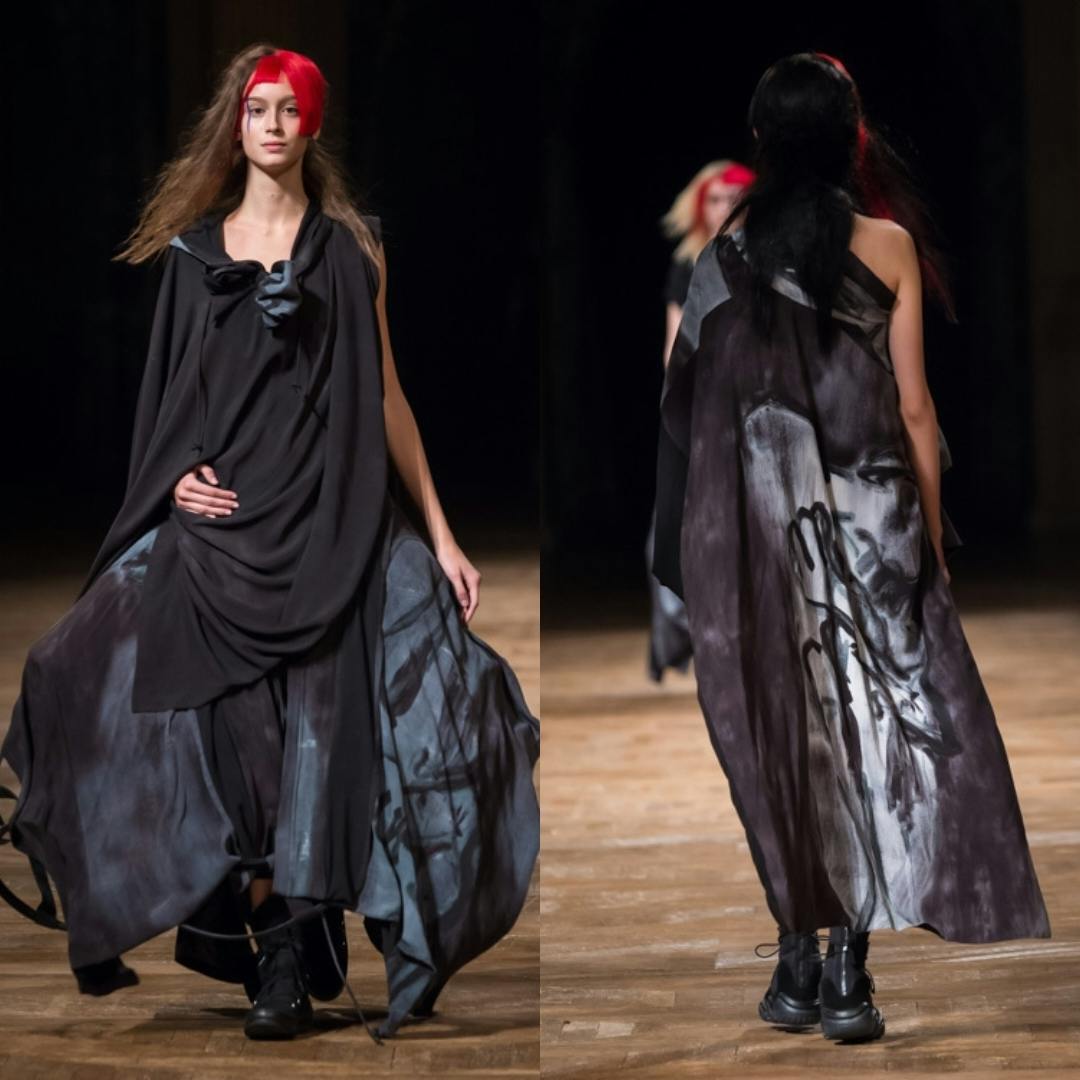 スカートが多く登場した、ヨウジらしいコレクションです。