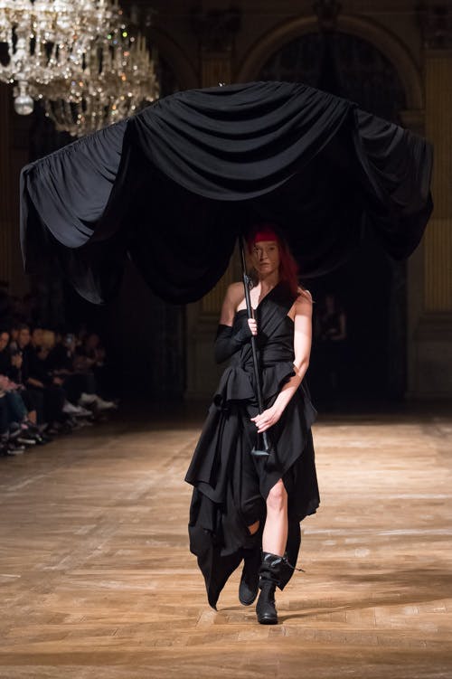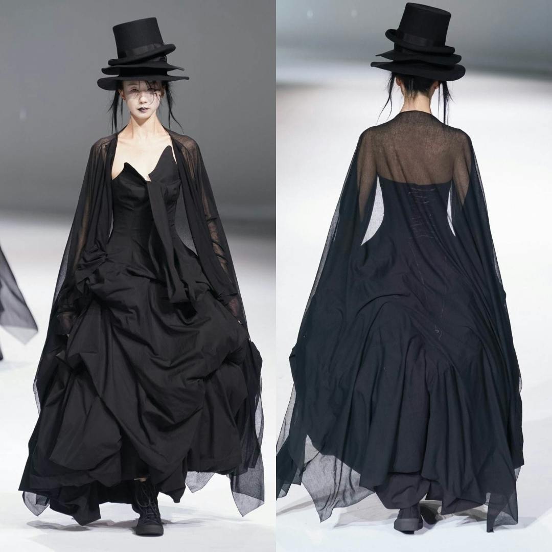 黒を基調としたアシンメトリーで身体を覆うようなデザインのファッションが、世界のモード界に革命を与えました。