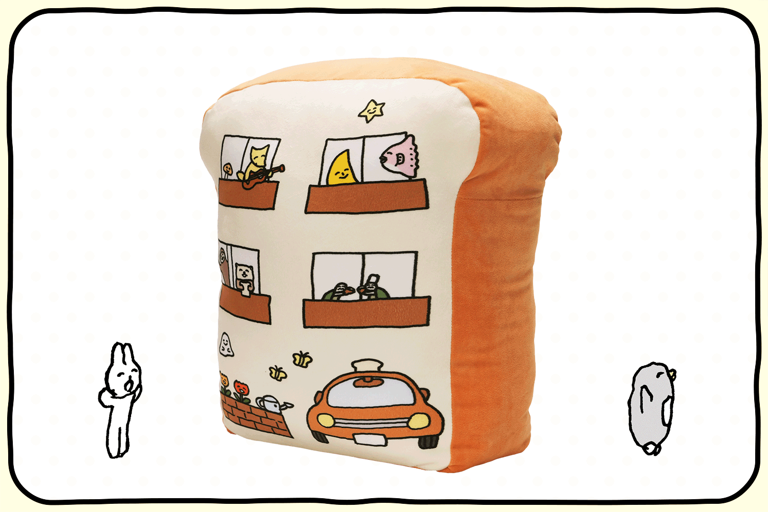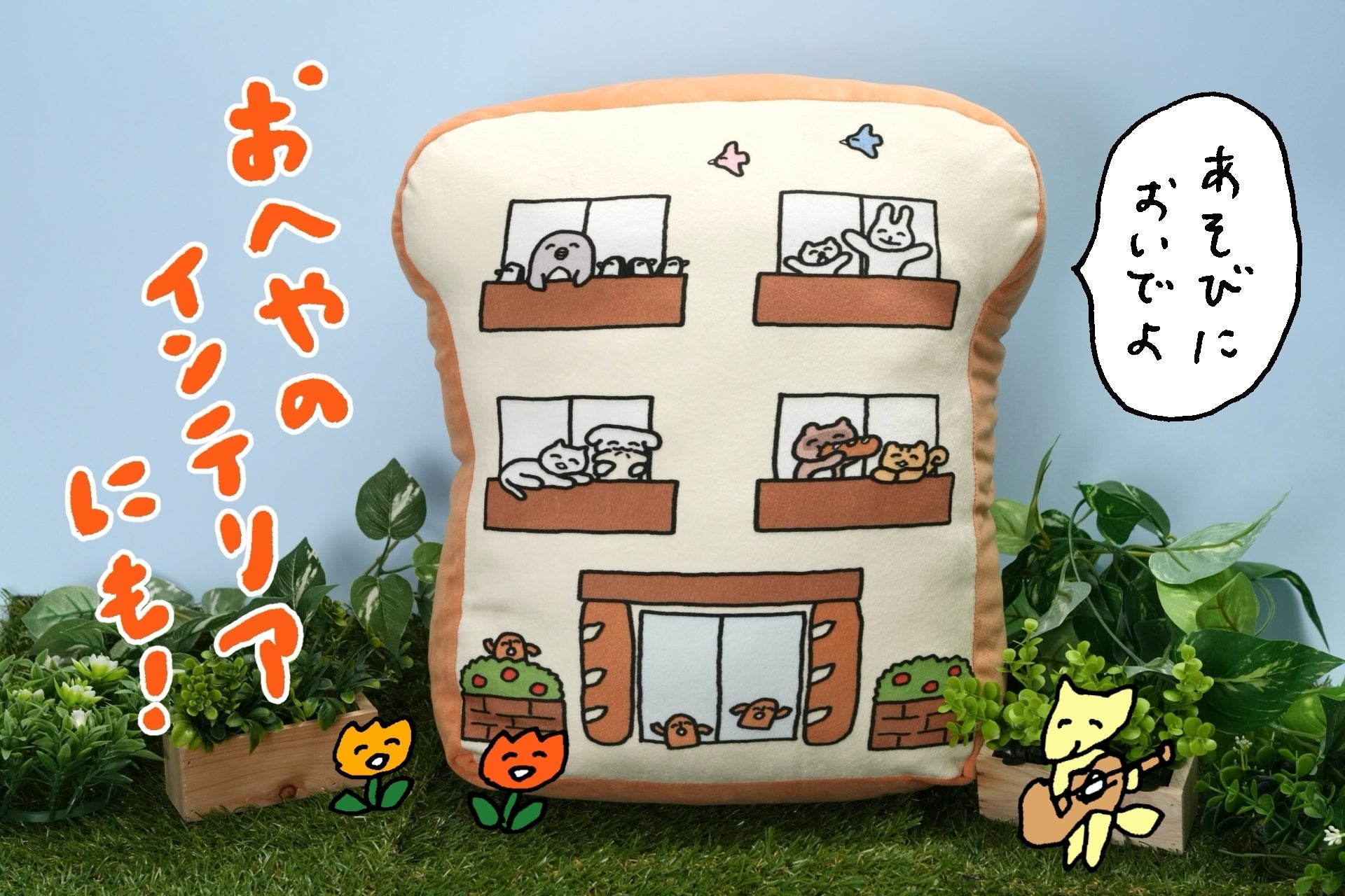 くしゃかわの愛らしいキャラクター達が散りばめられたクッションは