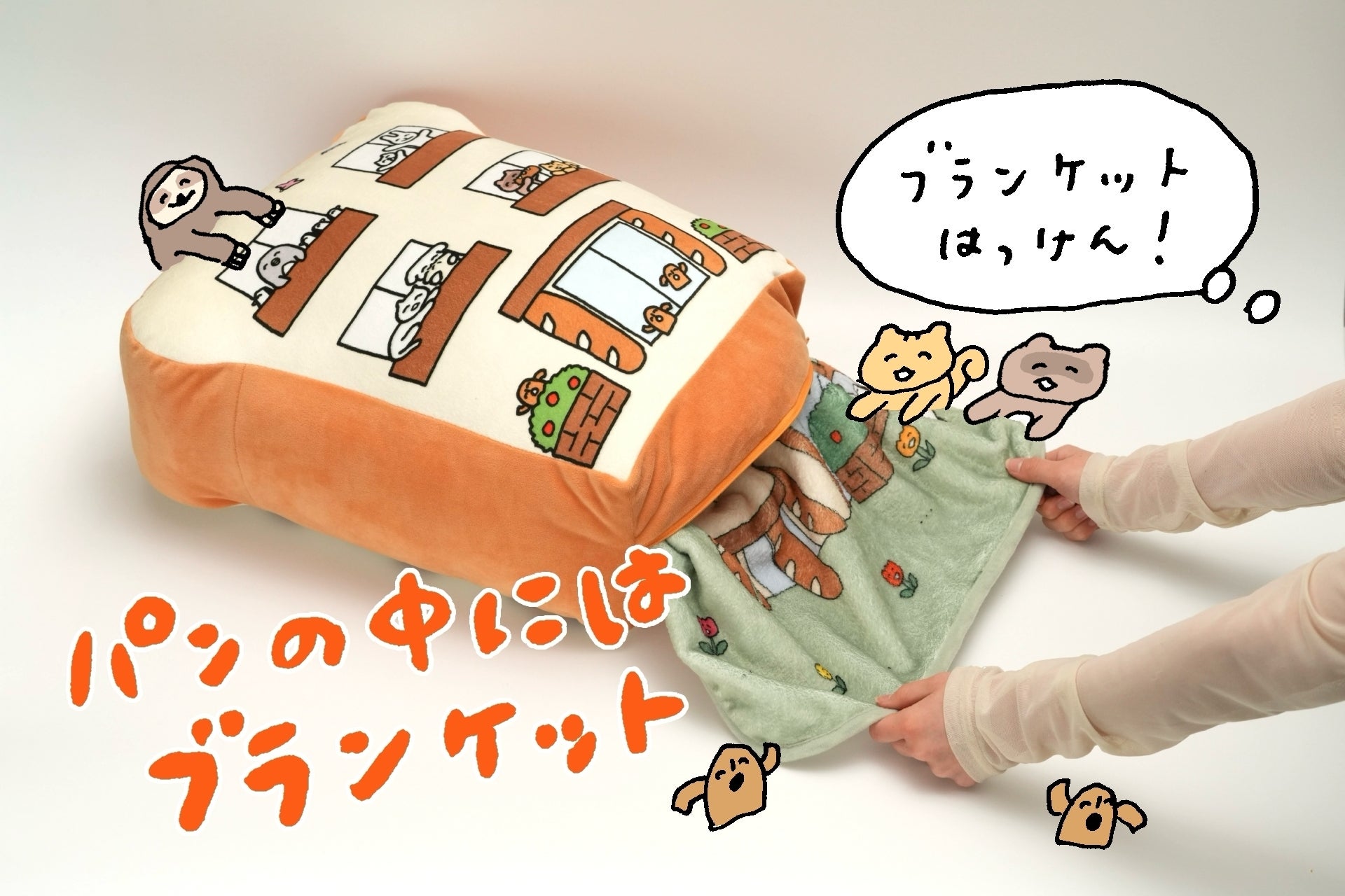 イラストレーター「くしゃかわ」が描く、愛らしいキャラクターたちが「パンのいえ」をモチーフにしたクッションブランケットになりました! クッションにブランケットを収納でき、もちもちとふんわりの心地よさで癒しをお届け♪単体でも使えて実用的でかわいらしいアイテムです♪商品化実現のため応援お願いします!