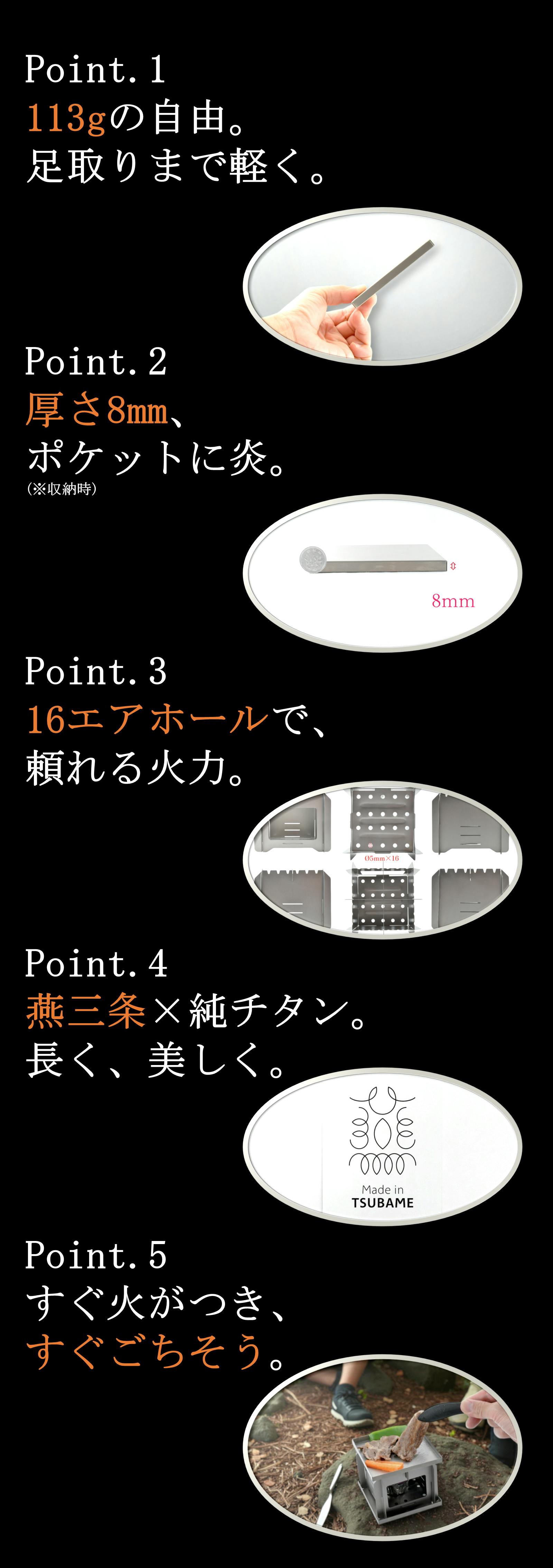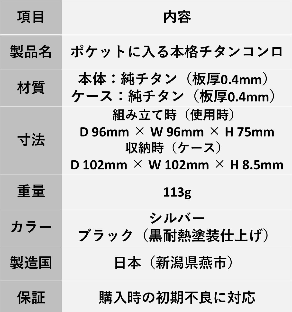 超コンパクトでありながら、道具として信頼できる強さ。これまでの当社商品の中において、唯一無二のチタンコンロです。