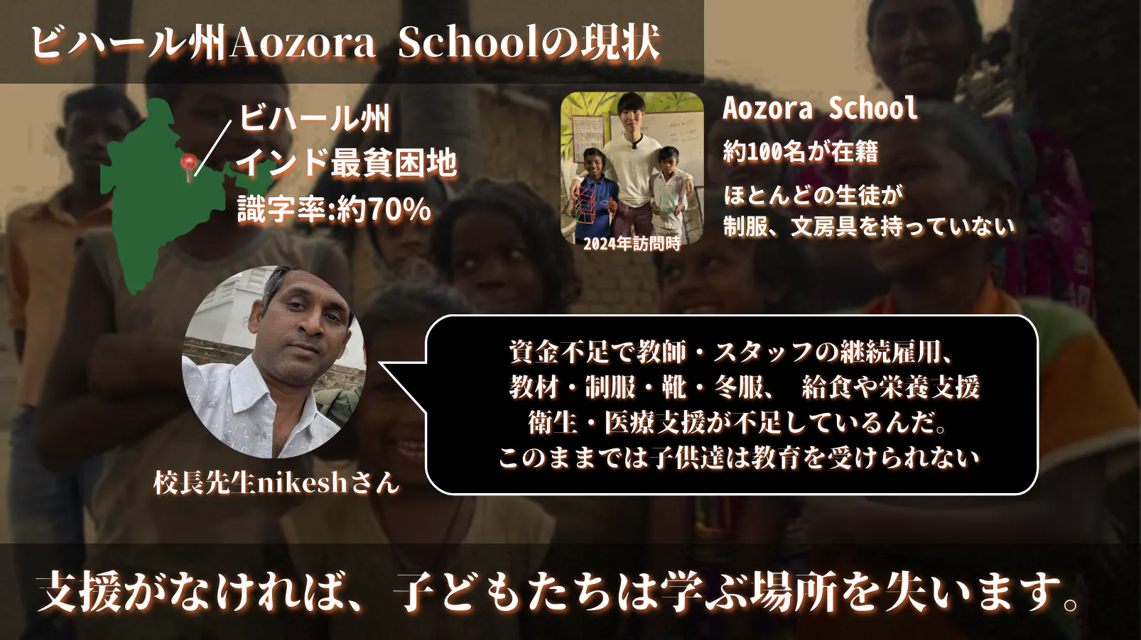 Aozora Children Educational Welfare Trust は、インド最貧州の一つ・ビハール州で、