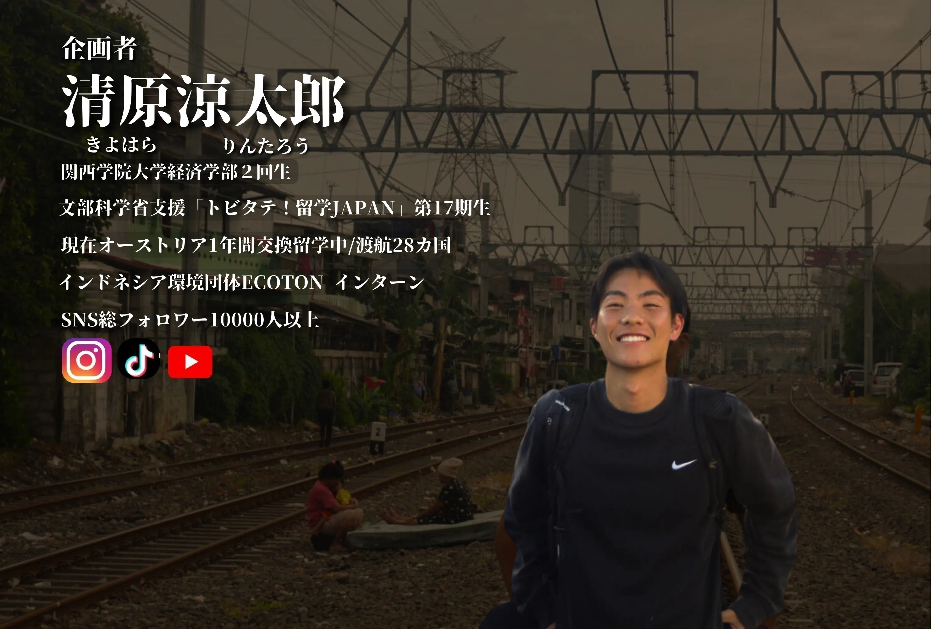 現在交換留学でオーストリアの大学に通う20歳の清原涼太郎(きよはらりんたろう)です。