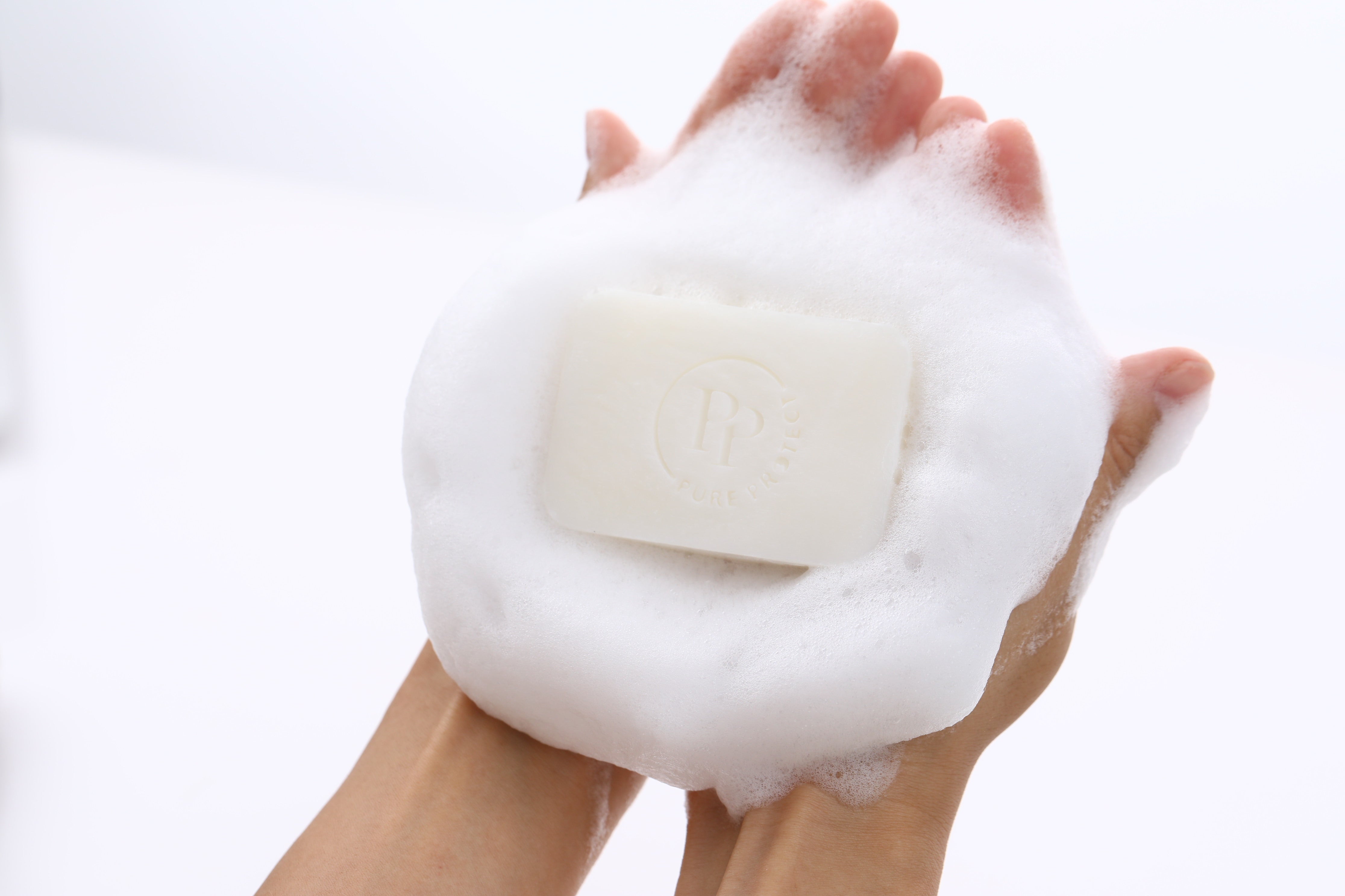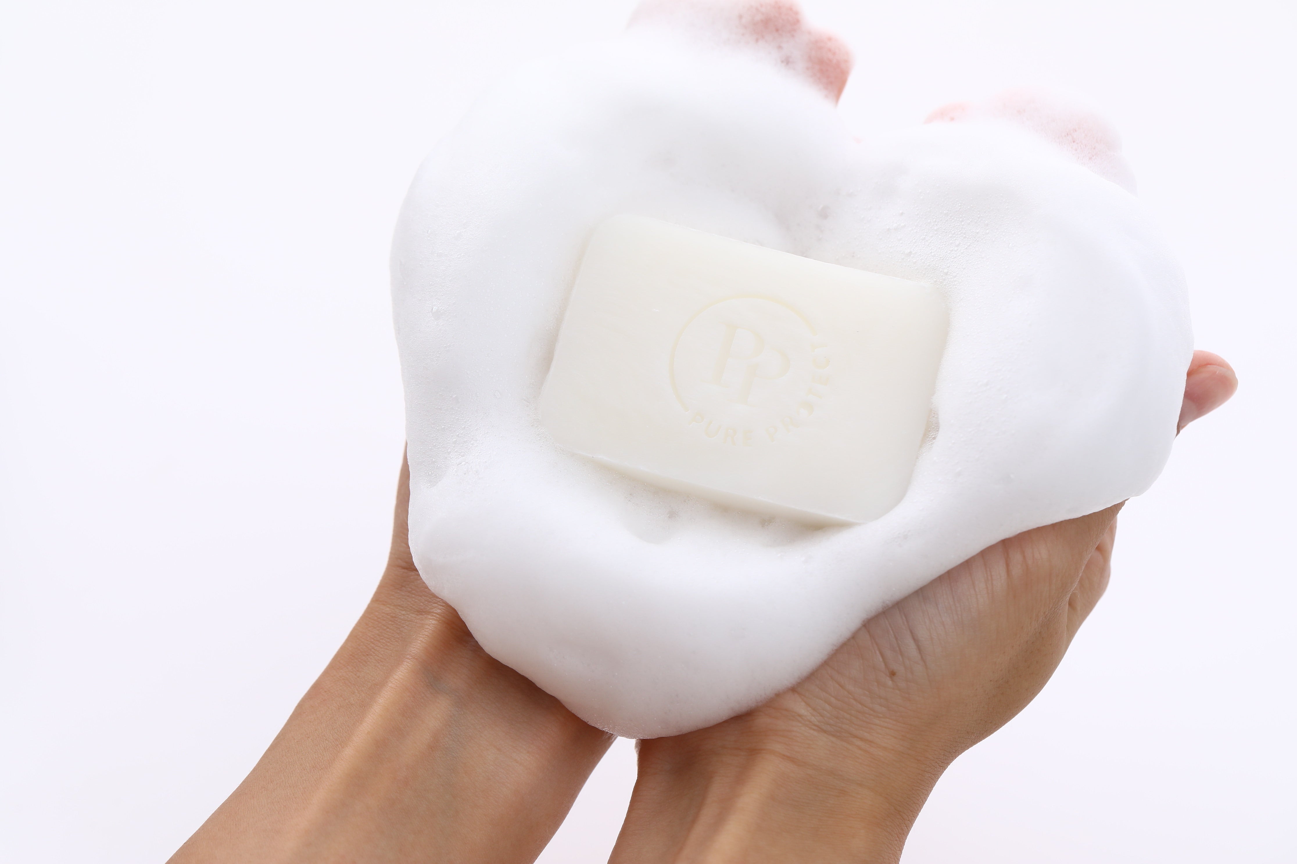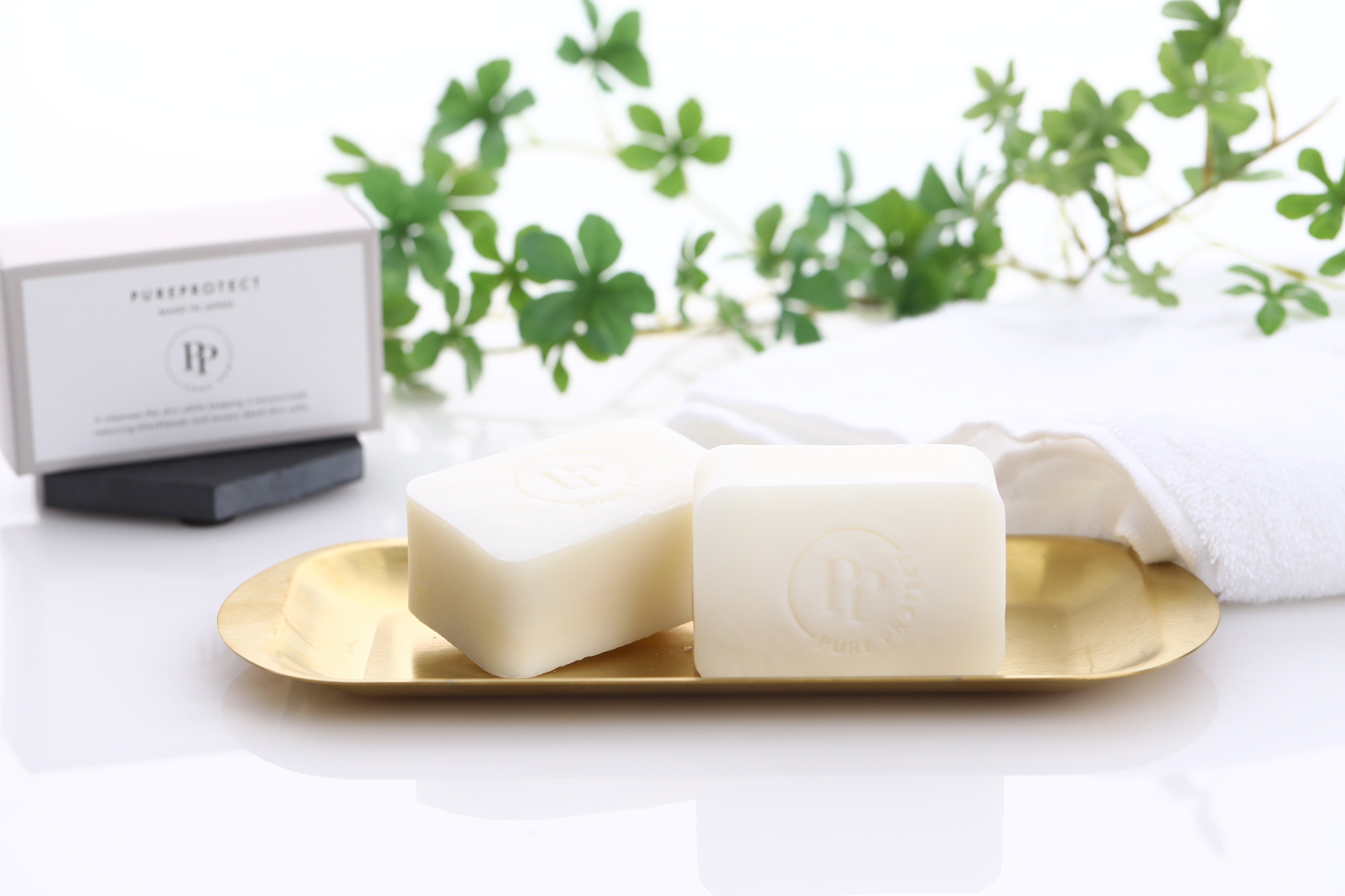 世の中に無添加石鹸はたくさんありますが、それでも痒みが出てしまった経験をお持ちの方も多いのではないでしょうか。私が開発した【pureprotect】は、職人さんの伝統的な釜炊き製法で丁寧に作られた、赤ちゃんから大人まで安心してお使いいただける石鹸です。常在菌を守りながら汚れをしっかりと落とし、肌のバリア機能を高めてくれるサポートができる特別な処方となっています。