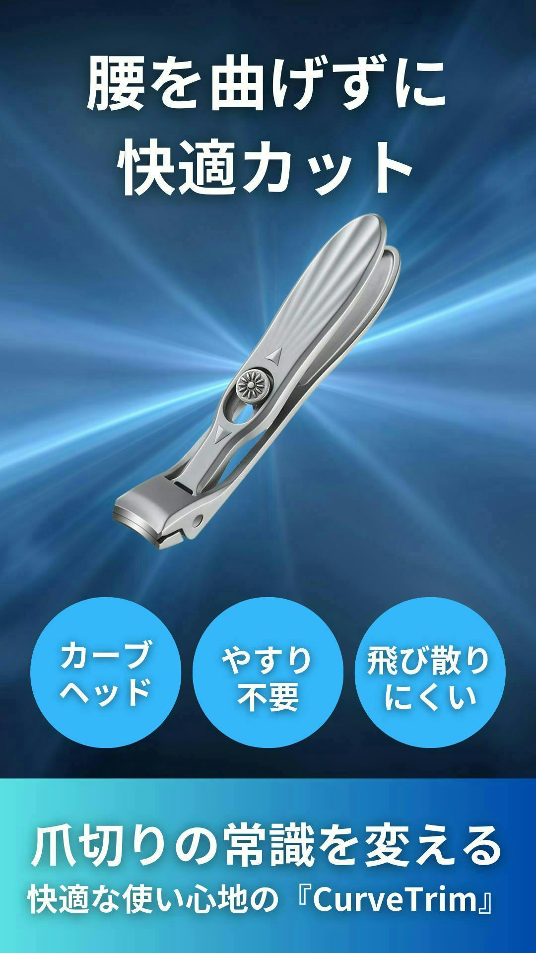 爪を切る時間が少しでも快適になればという思いで、この商品を作りました。ぜひ『CurveTrim』を使って、爪切りのストレスを減らしてください。