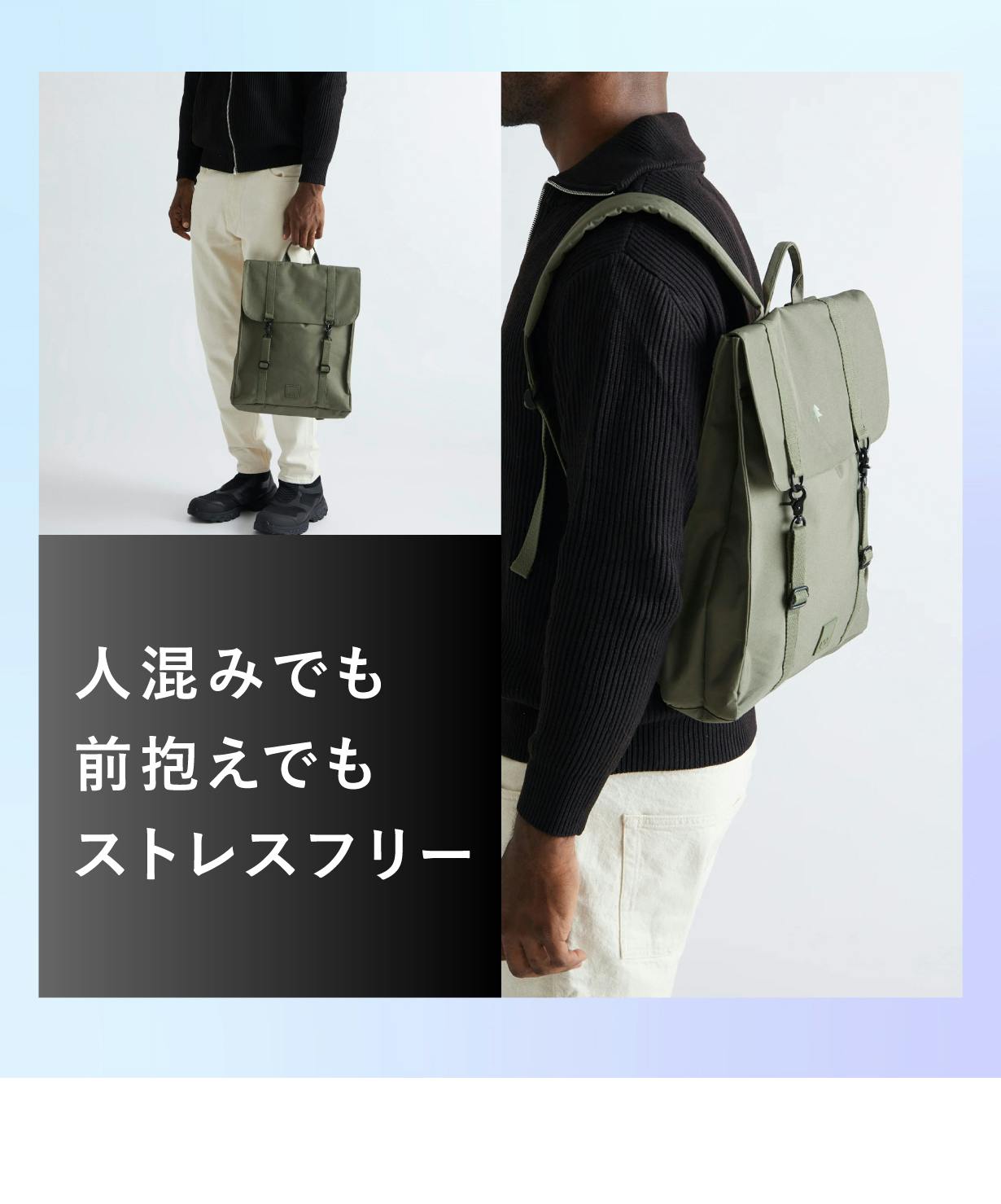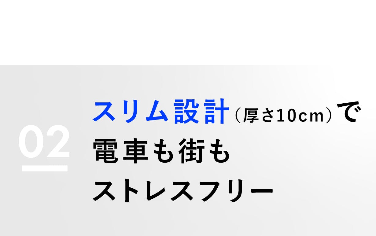 前に抱えても収まりがよく、狭いカフェの椅子や満員電車でも気を遣わない設計です。