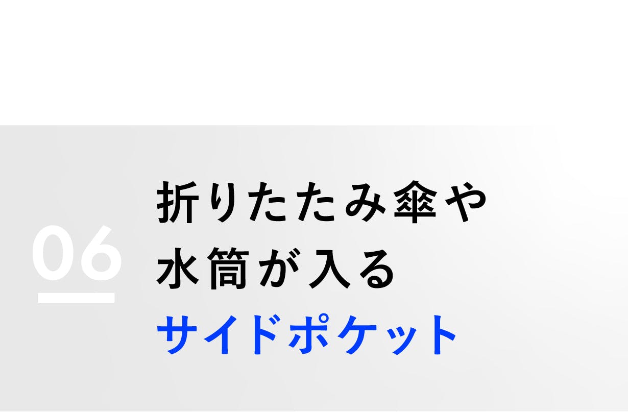 濡れた傘やペットボトルを、メイン収納と分けて持てるのが嬉しい。