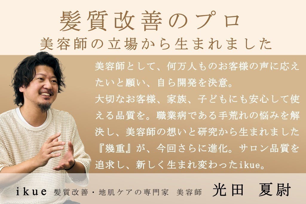 「幾重|ikue」は、当たり前とされてきたシャンプーの設計そのものから、生まれ変わりました。
