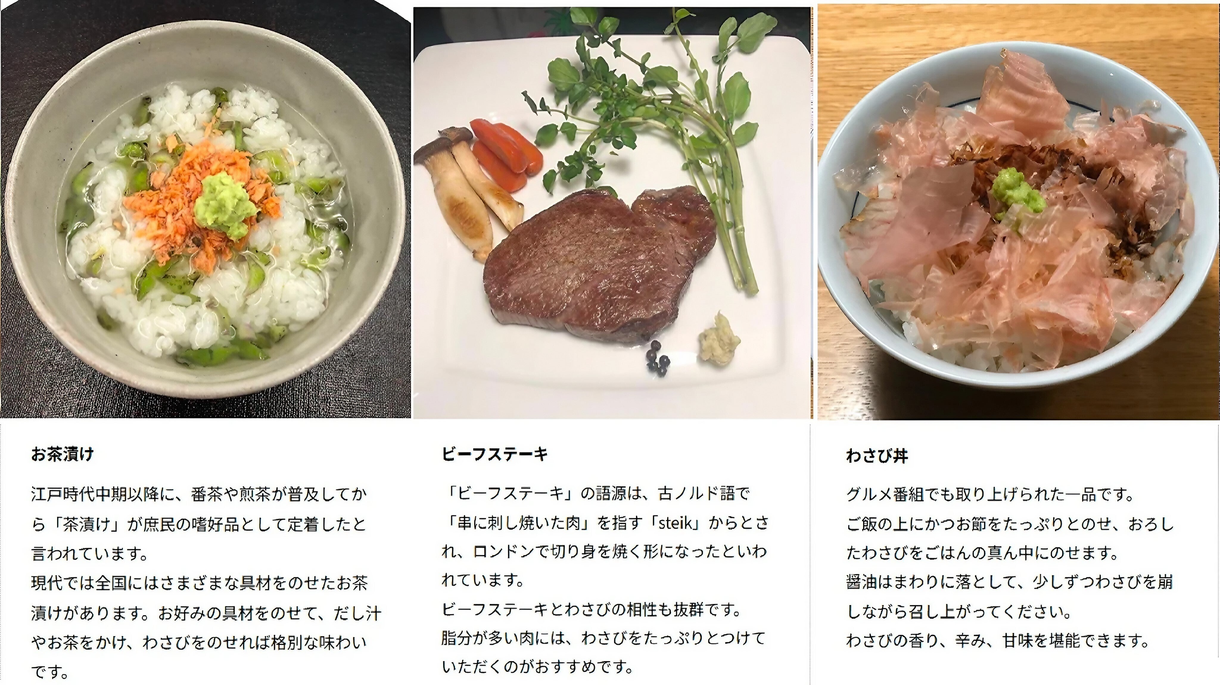 ★わさびの美味しい食べ方 出典:一般社団法人日本わさび協会https://www.wasabi.or.jp/knowledge/recipe