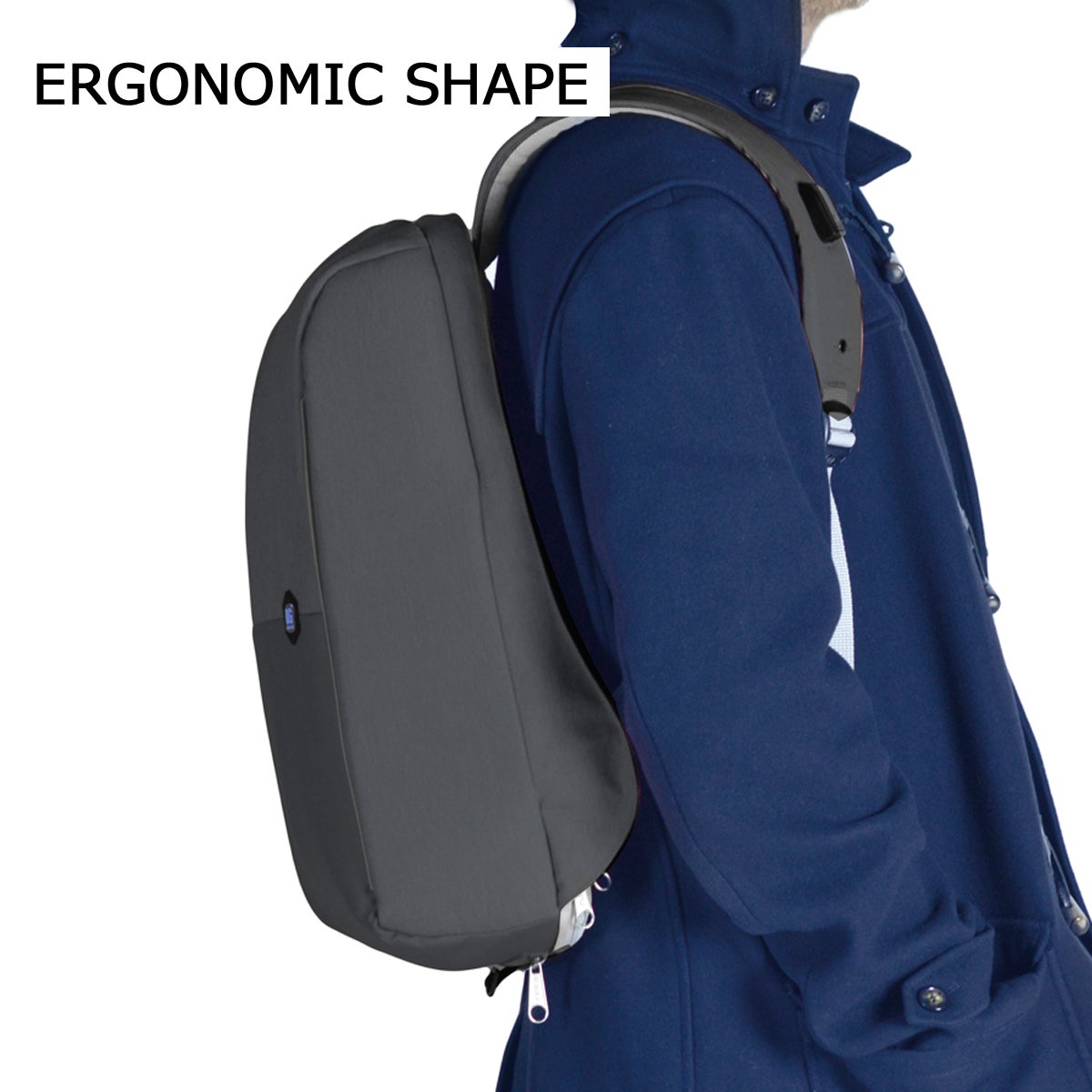 - ① 超軽量900gで人間工学に基づいたデザインなので身体にぴったりジャストフィットします。