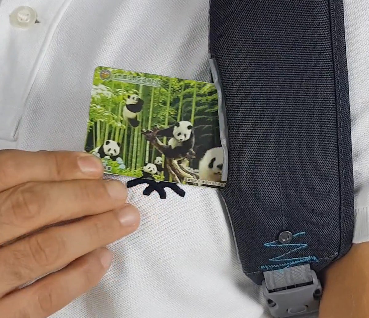 ストラップ部分にはスイカなどのICカードが収納できるポケット付き