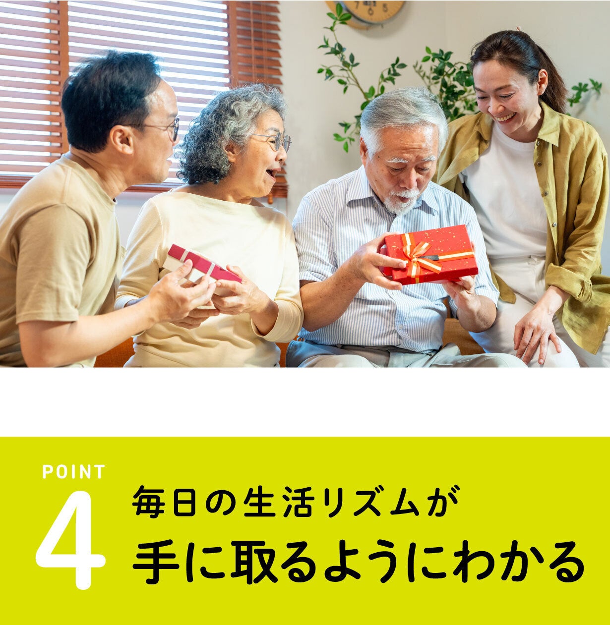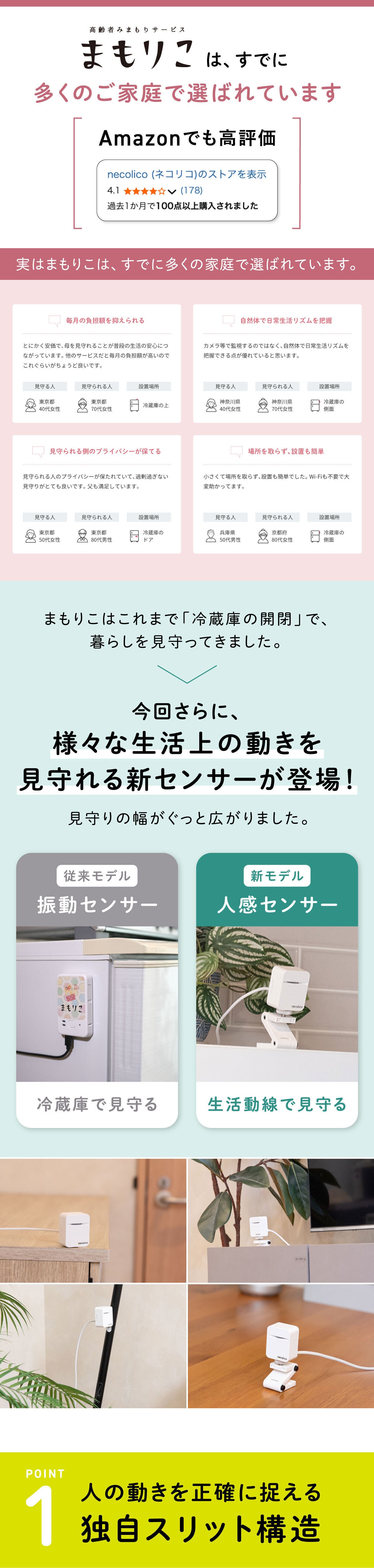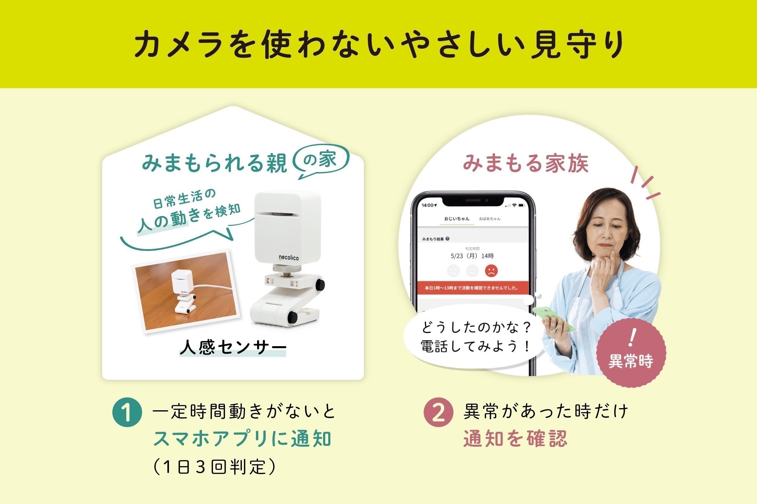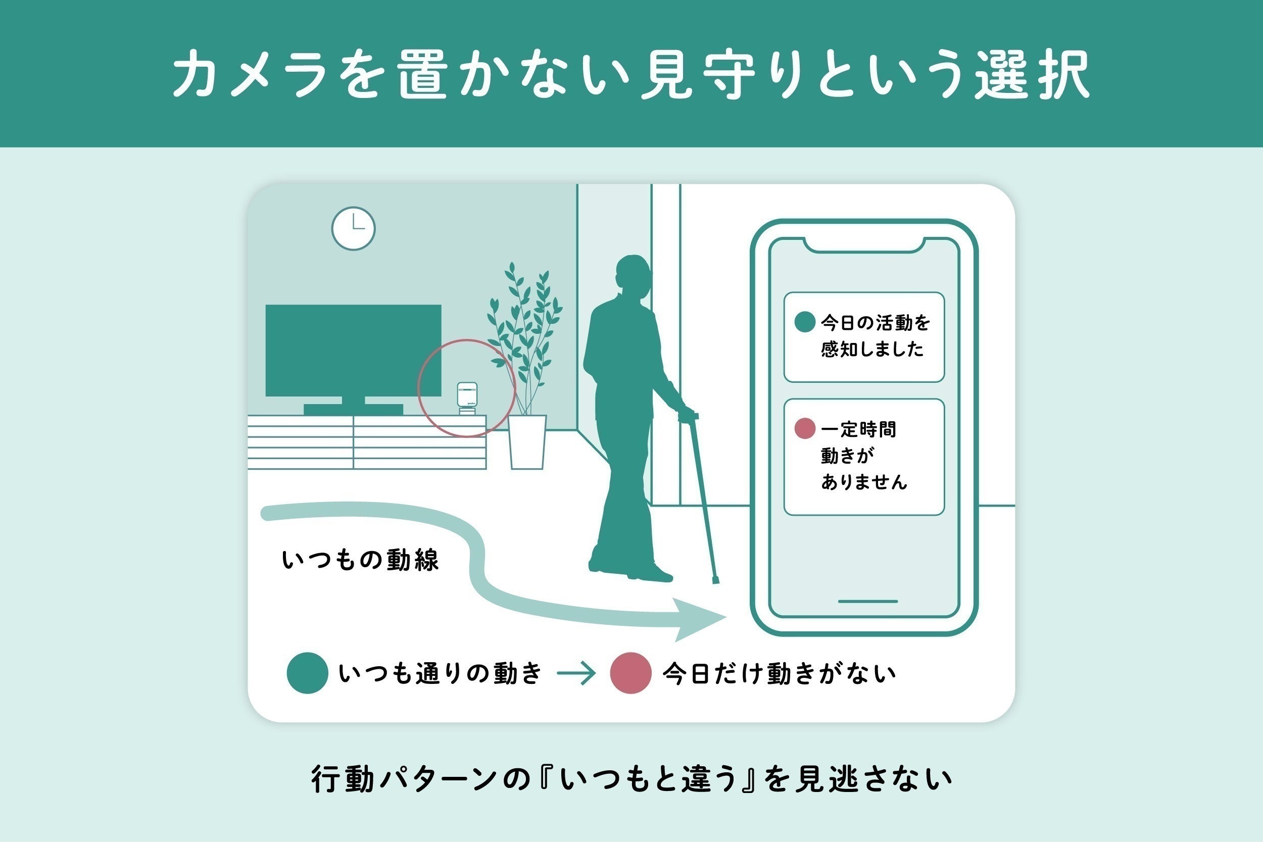 カメラではないので、ご家族の理解も得られやすく、毎日をそっと見守ることができます。