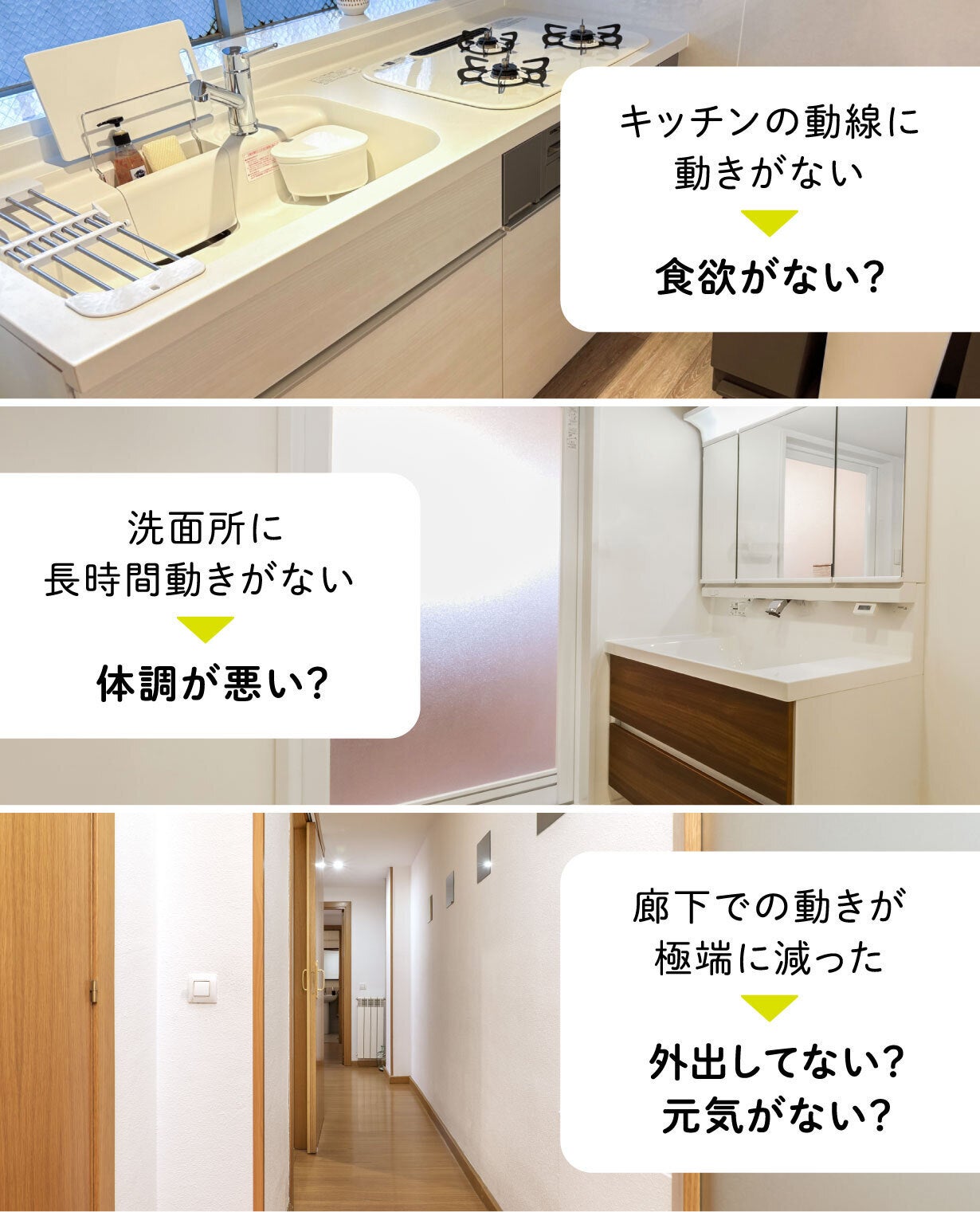 生活動線上での動きが減ると、生活に変化があるということ。