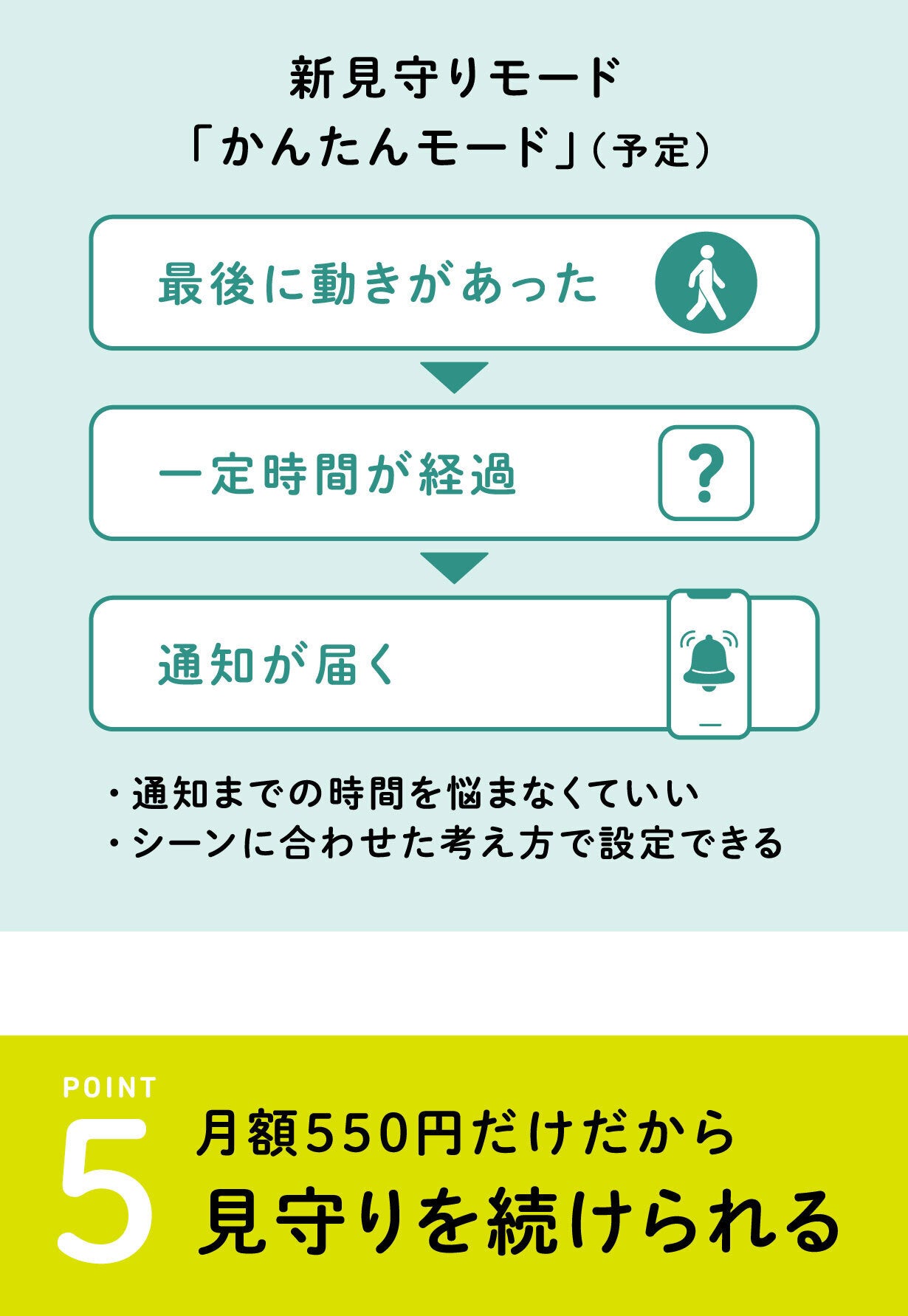 見守りに本当に必要な情報だけを届ける、やさしい見守りを実現します。
