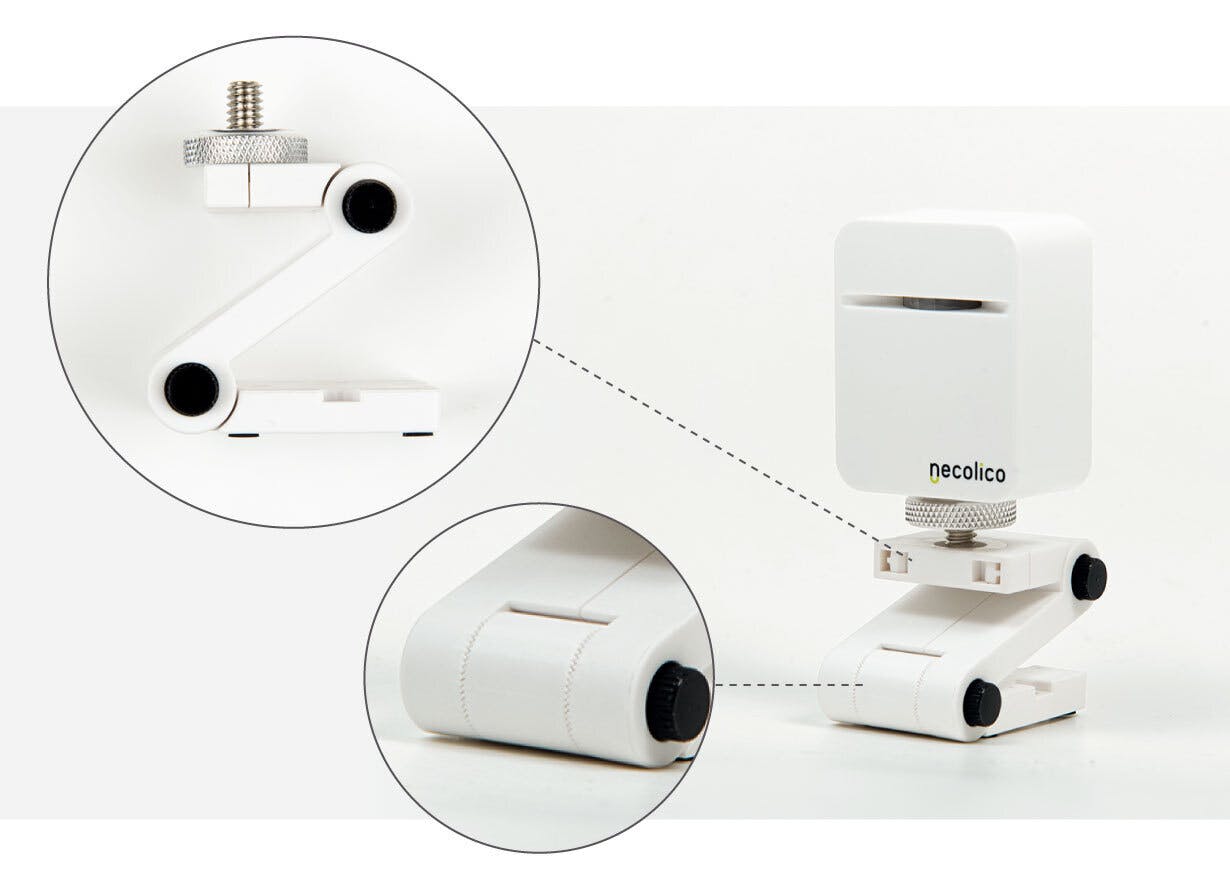付属の専用スタンドは、-90°〜+90°まで、5°刻みで角度調整が可能。置く場所の高さや環境に合わせて、検知範囲をぴったり合わせられます。壁掛け・棚置き・冷蔵庫上など、どんな配置でも“最適な検知”ができる設計です。