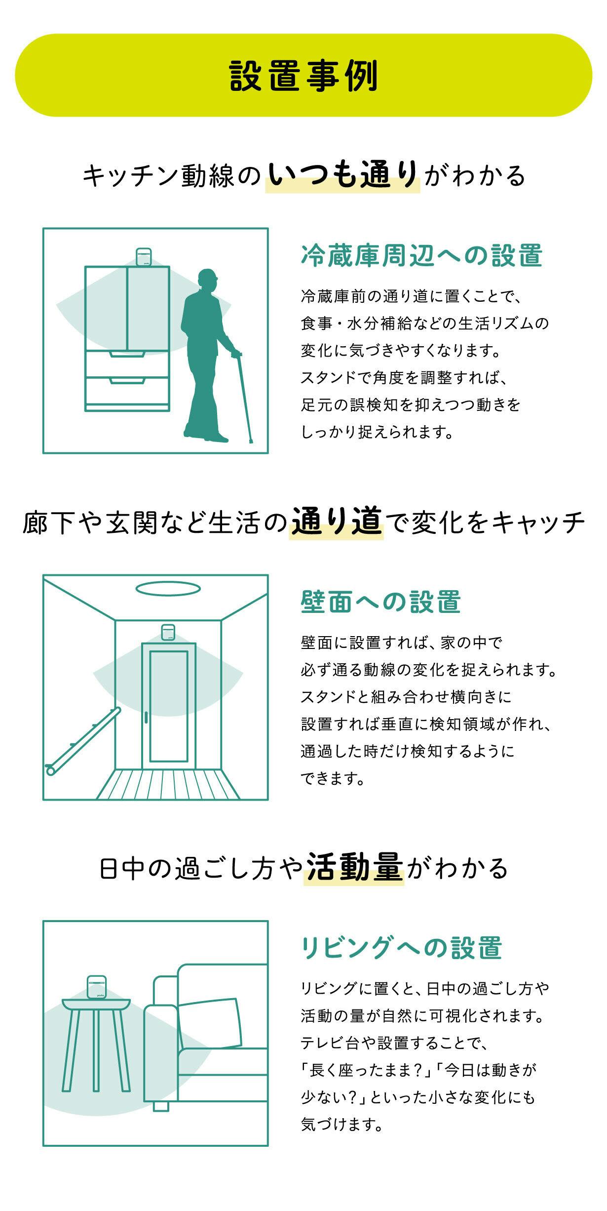 カメラではないので、ご家族の理解も得られやすく、毎日をそっと見守ることができます。