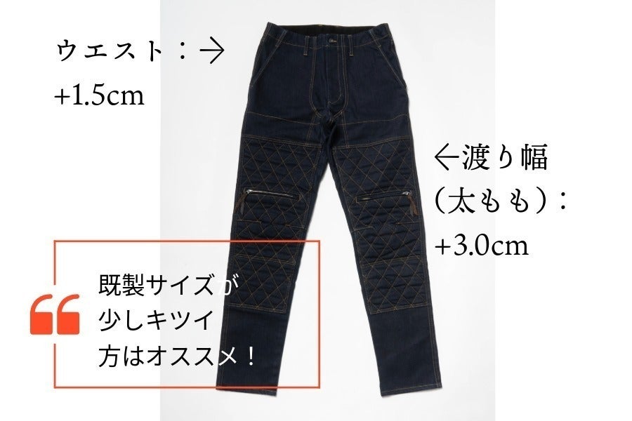 「マックスフリッツを格好よく着たいが、足が太くて気後れする…」そんな悩みを解消!16ozの超肉厚コーデュラデニムを採用し、肉感を拾わず膝の圧迫感も皆無な「足ふとライダー専用」ワイドシルエットを別注。プロテクターの存在を消す武骨なハリを特別サイズで、我慢しないバイクライフを。