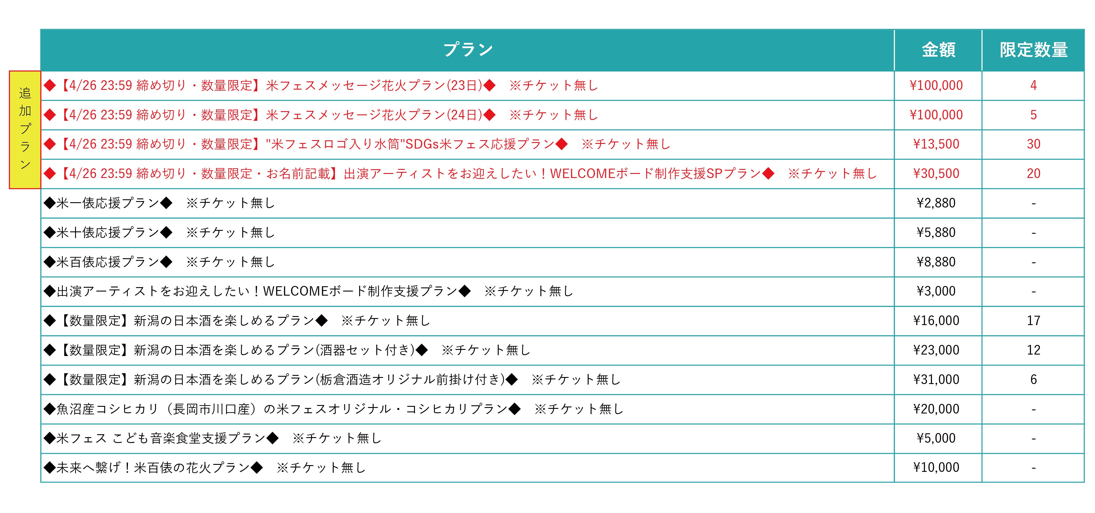 ◆米百俵応援プラン◆ ※チケット無し 8,880円