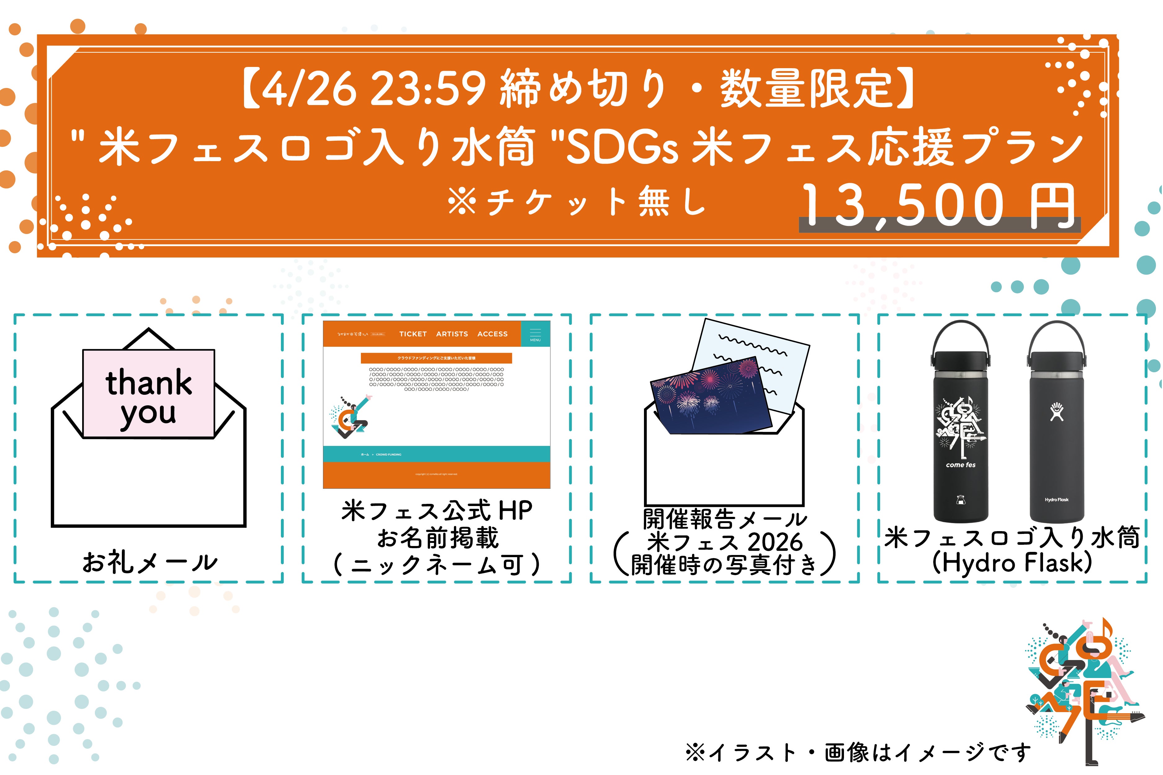 ◆【4/26 23:59 締め切り・数量限定】"米フェスロゴ入り水筒"SDGs米フェス応援プラン◆ ※チケット無し