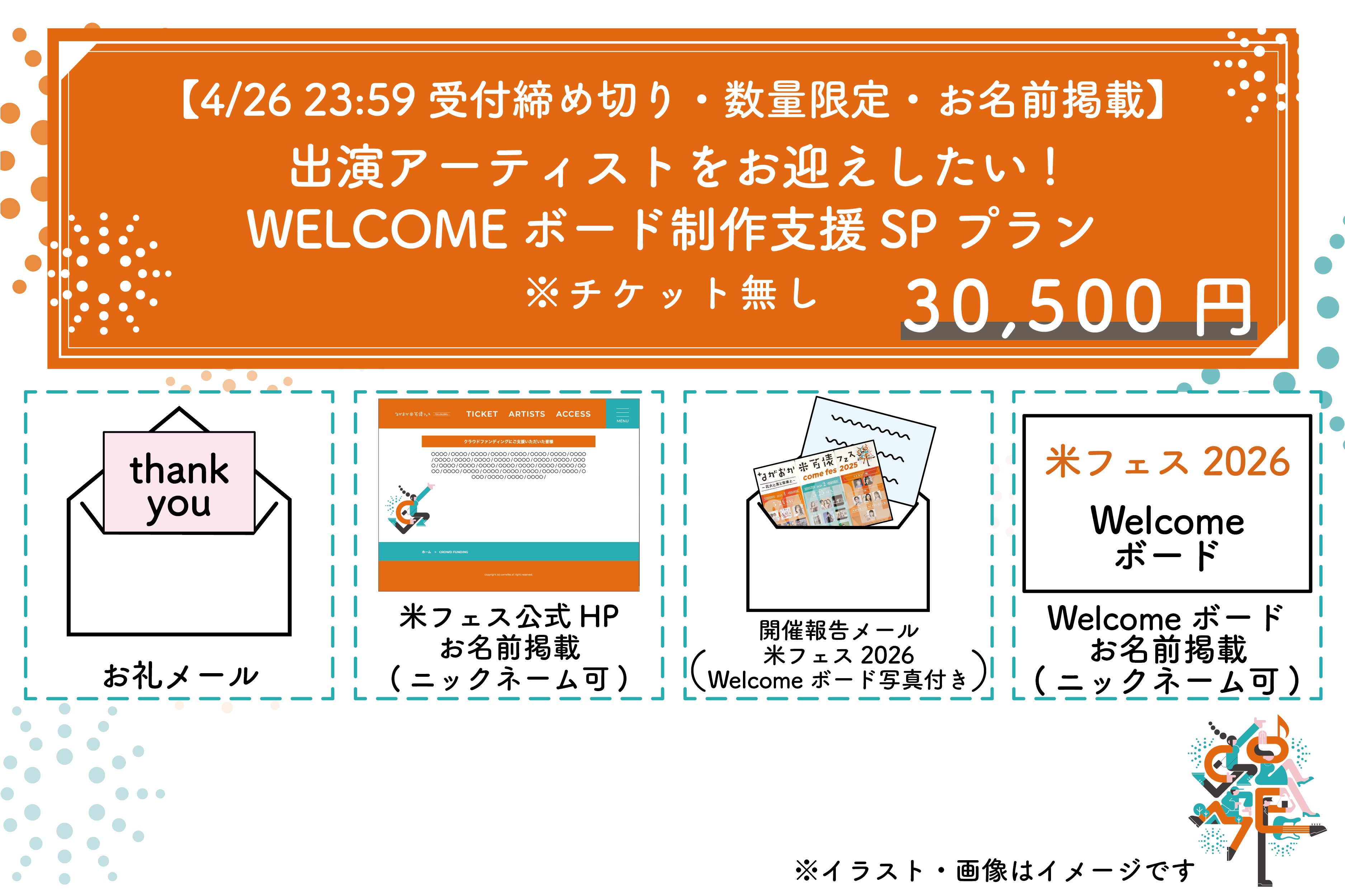 ◆【4/26 23:59 締め切り・数量限定・お名前記載】出演アーティストをお迎えしたい!WELCOMEボード制作支援SPプラン◆ ※チケット無し