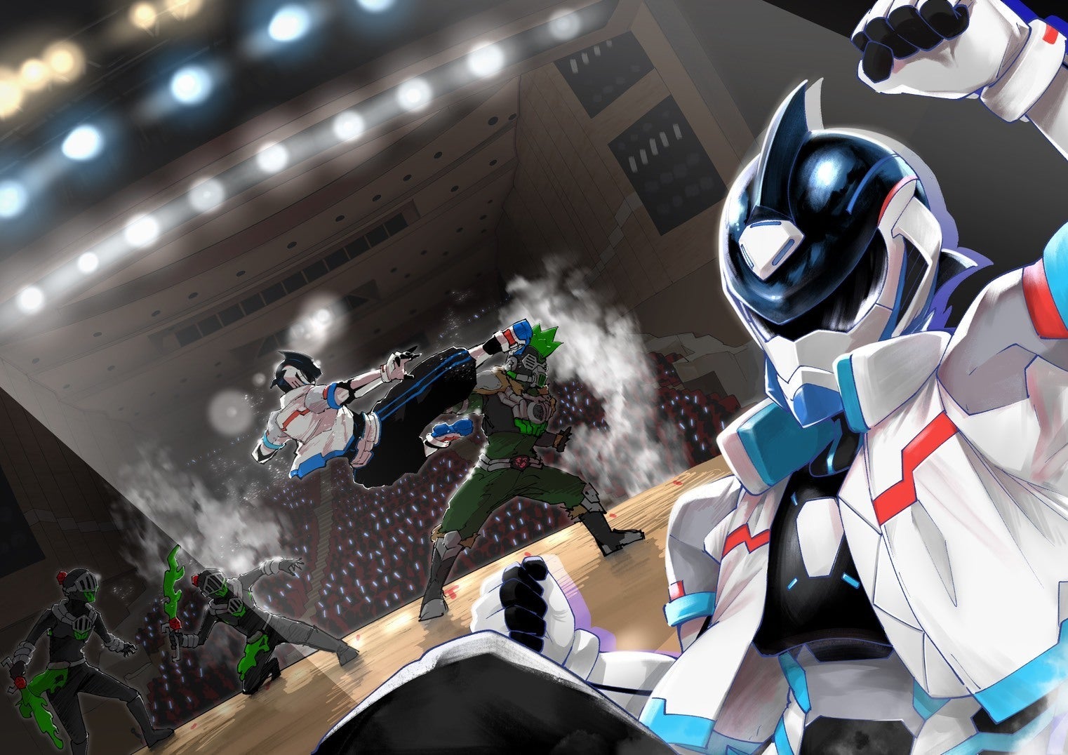 その他にもプロの照明や音響にスーツアクター、演出、リターン品のDVD用に複数台の撮影カメラ&カメラマンなどを手配しており、TVで活躍しているヒーロー達がやっている大規模ショーに匹敵するようなクオリティのステージを目指したいと思っています!!