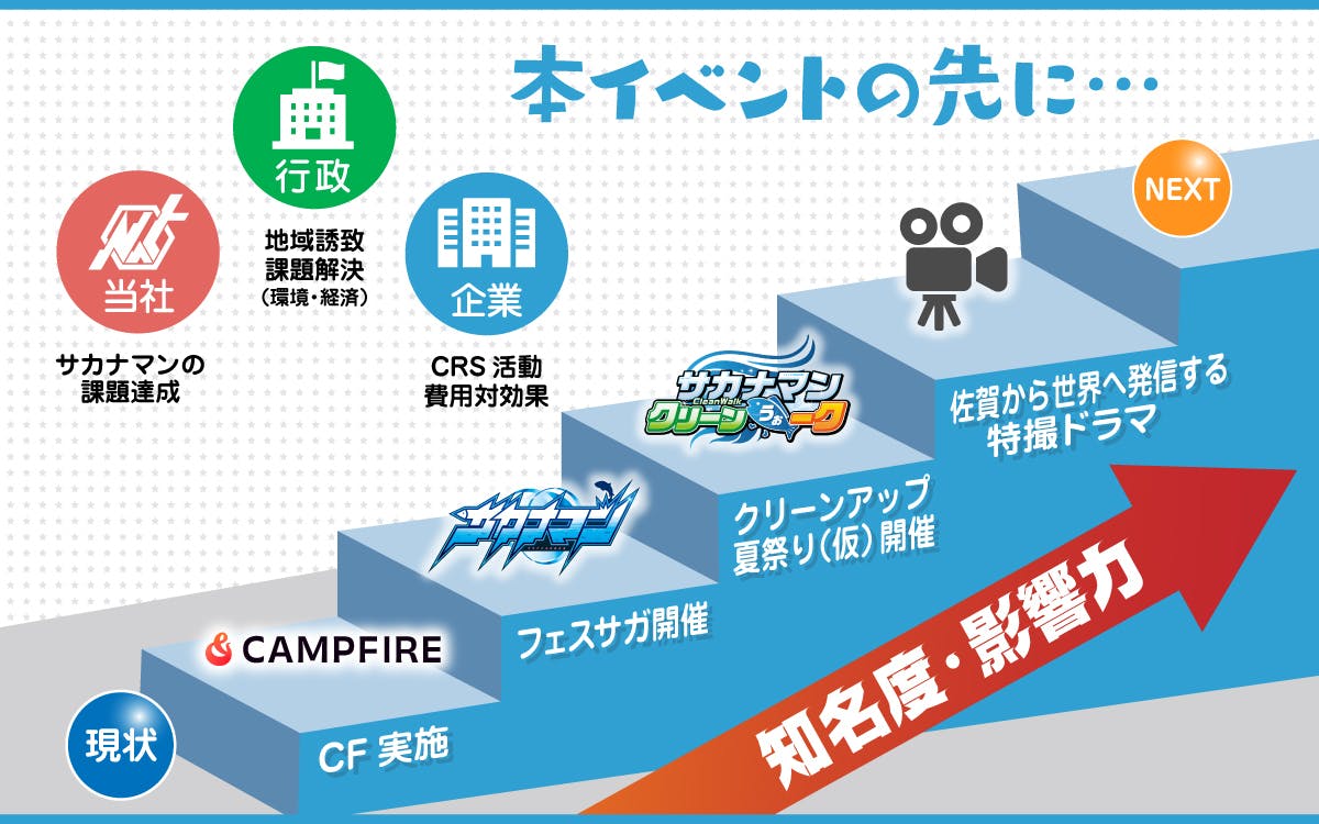 そしてその後の目標として大規模な海岸清掃×夏祭りイベントの開催や、ゆくゆくは佐賀から世界へ発信する特撮ドラマを制作してみたい!あといつか魚屋さんとかも開店してみたい!