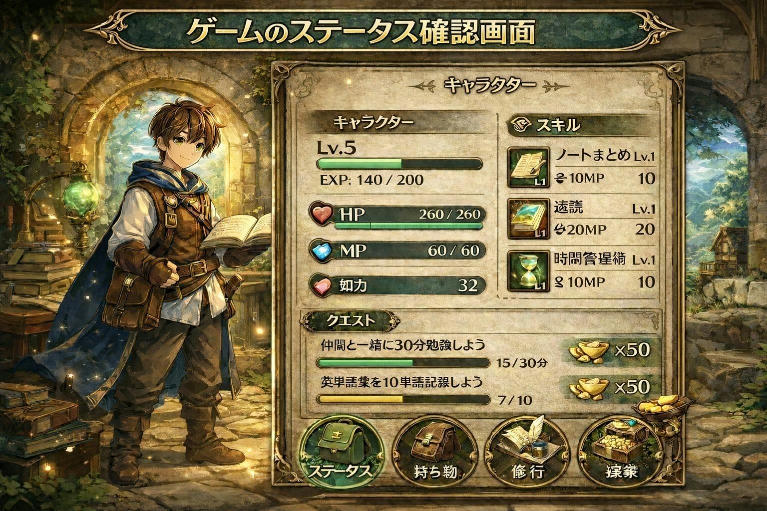 このプロジェクトは、「勉強が続かなかった人のためのRPG」です。