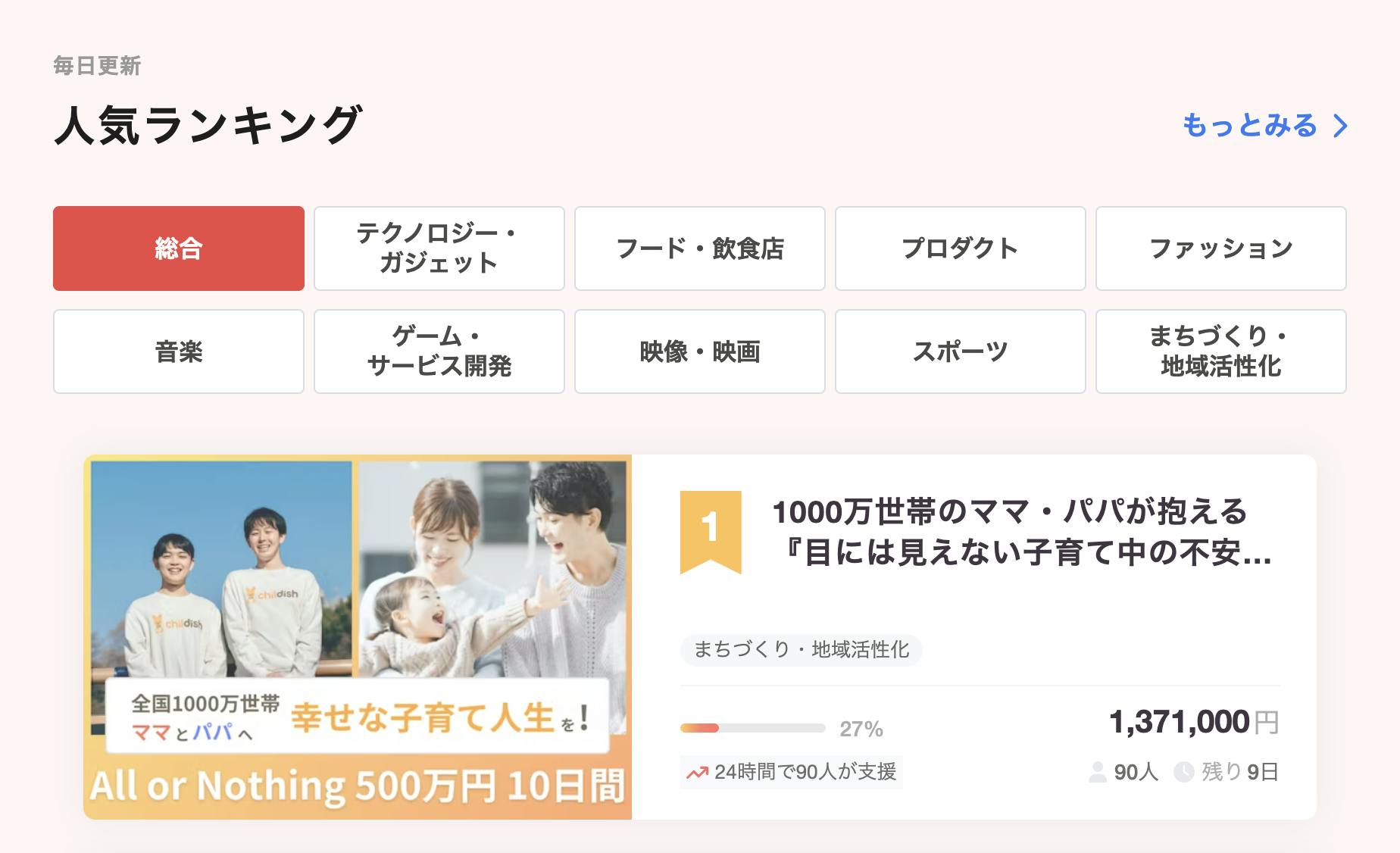 112人、1,676,000円という金額ですが、昨日の総合ランキングではなんと1位にランクインしました。