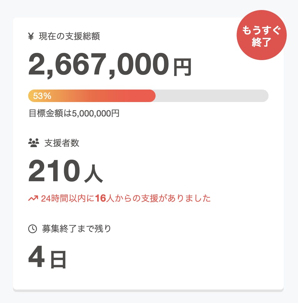 ぜひ今一度、周りの方への拡散や、もしよければご支援で、みなさんのお力をお貸しください。