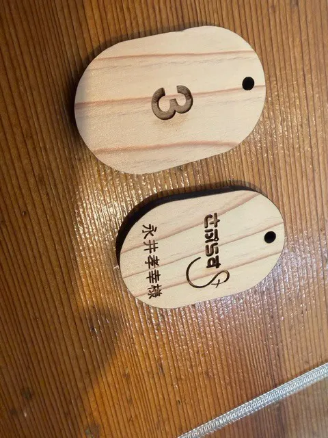 日光杉を使った清算タグのネーミングライツをして頂いた方を