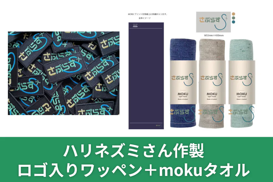 ③ハリネズミさん作製ロゴ入りワッペン+mokuタオル|3,000円