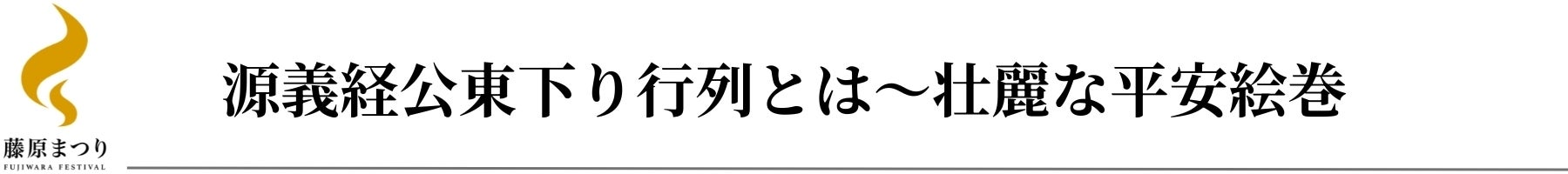 義経公東下り行列は、義経主従が、兄である源頼朝の追討から逃れて平泉に辿り着いた時、藤原秀衡公や地元民が温かく迎入れ歓迎された故事に倣ったもので、毛越寺から中尊寺までを総勢91名の行列によって壮観な平安絵巻を再現します。