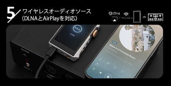- 5.ワイャレスオーデイオソース(DLNAとAirPlayを対応)。