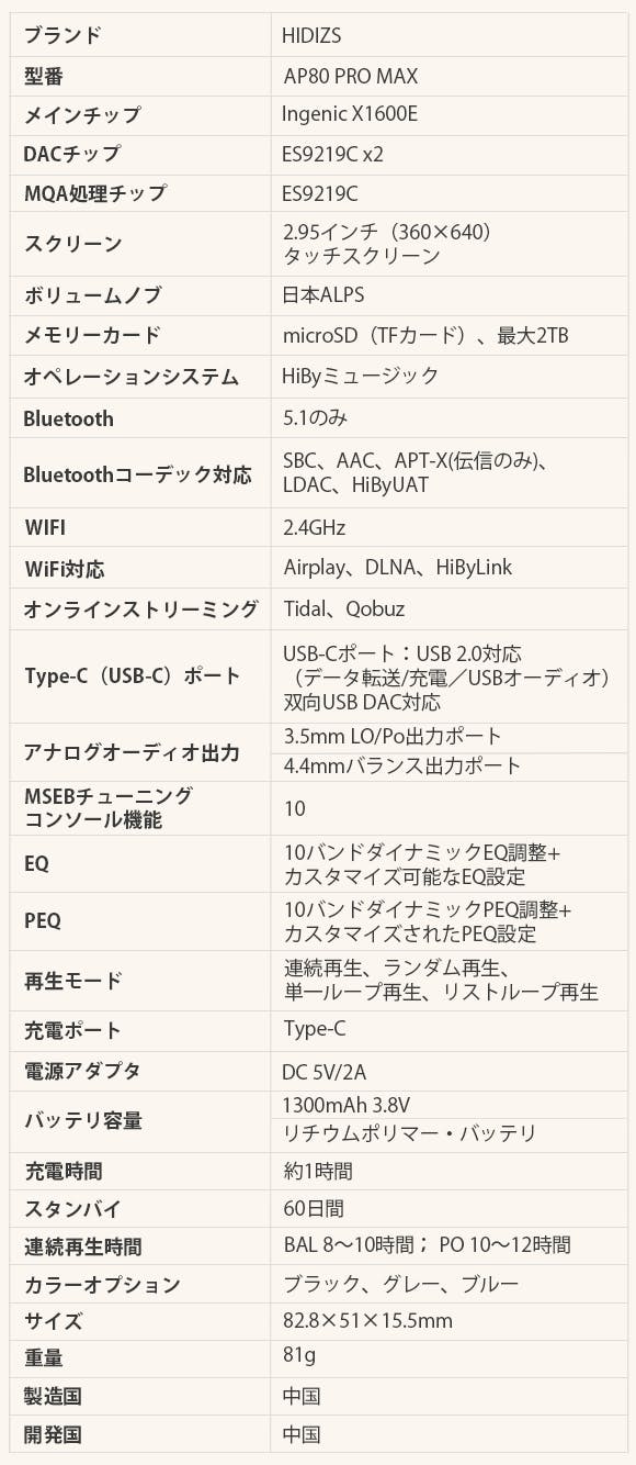 デジタルオーディオプレイヤー 「HIDIZS AP80 PRO MAX」の特徴: