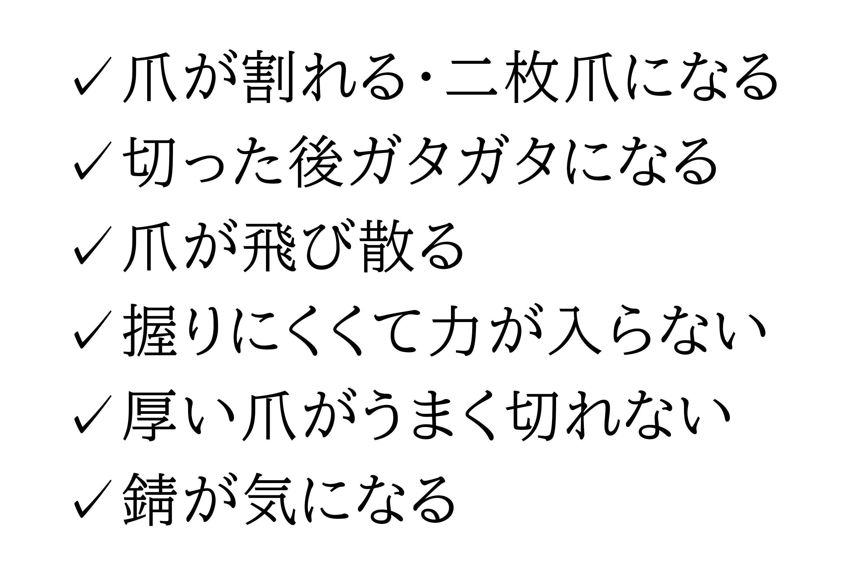 手が小さい方や握力に自信がない方でも扱いやすく、長時間の使用でも疲れにくい快適なデザイン。力を入れずに軽いタッチで切れるので、爪を押しつぶすことなく、美しく整えることができます。