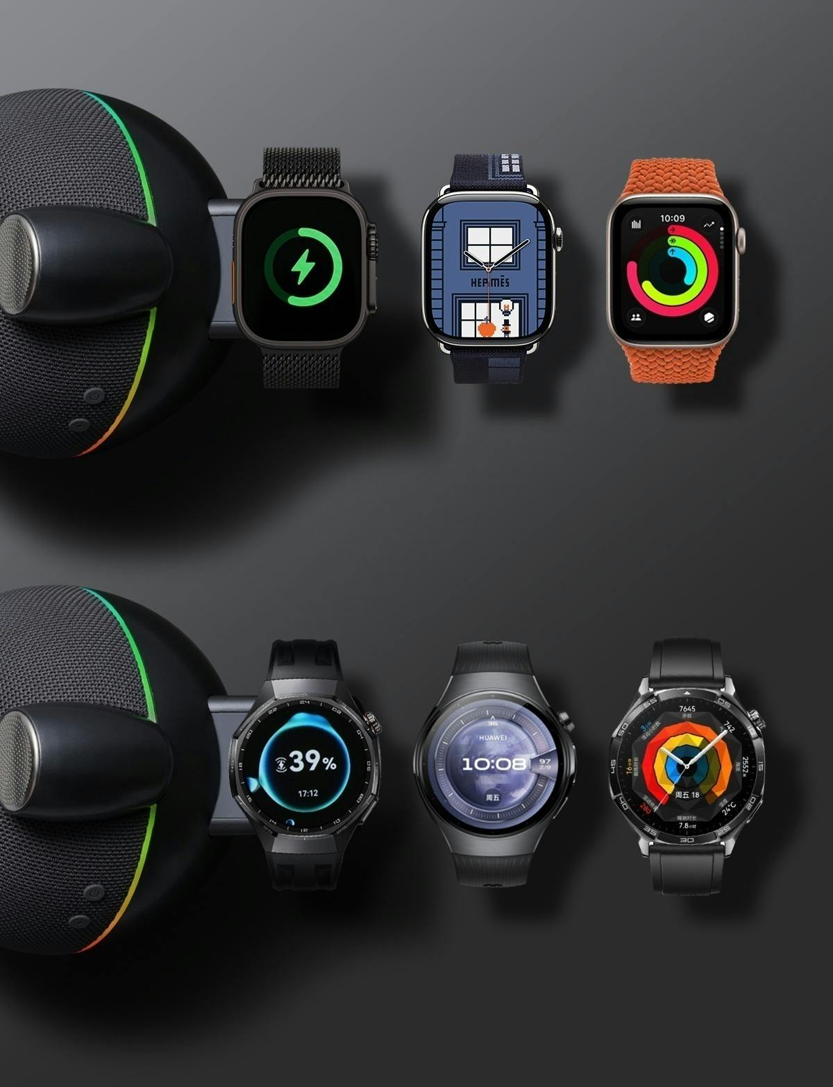 これ一台であなたのデバイスすべてをサポートします 。Apple Watchはもちろん、Huawei Watchの全シリーズにも対応した独自の設計を採用しました 。複数の専用充電器を使い分ける手間を省き、デスク上のケーブルを最小限に抑えることができます。家族や友人が異なるブランドのデバイスを使っていても共有できる汎用性の高さが、日常生活にさらなる便利さとスマートさをもたらします 。