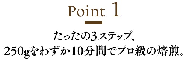 Point1:たったの3ステップ。250gをわずか10分間でプロ級の焙煎