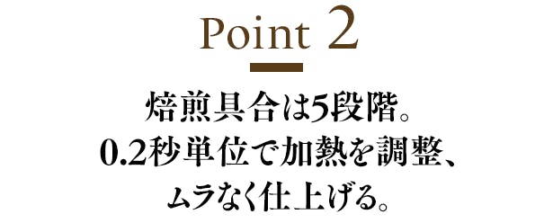 Point2:焙煎具合は5段階。0.2秒単位で加熱を調整、ムラなく仕上げる