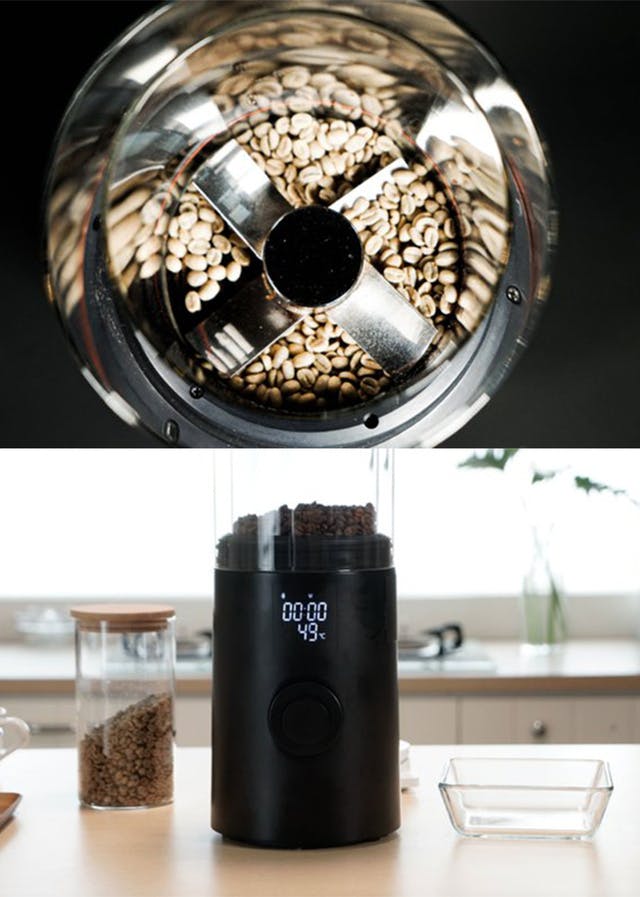 「いつでも中の様子が見えるので、生豆の焙煎具合を目視で確認しながら調整できます。これは、なかなか楽しい時間です。」みなさんのおうち時間の楽しみが増えます。