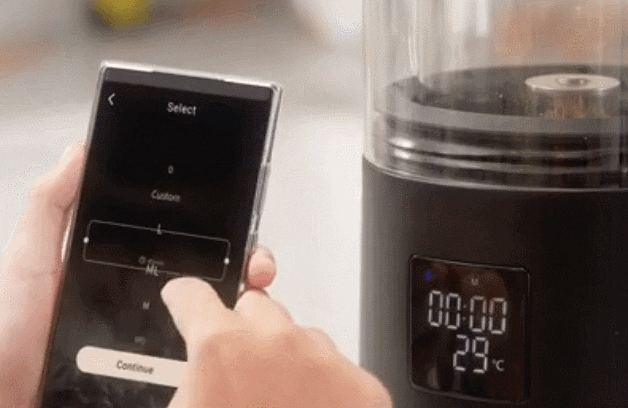 この家庭用ロースター(焙煎機)は「スマホ連携機能」を使って簡単に操作可能です。