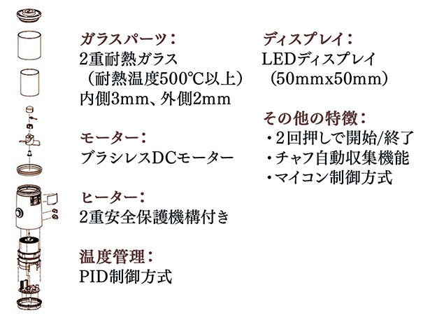 【Wake Up】のチャンバーは二重の耐熱強化ガラス製。