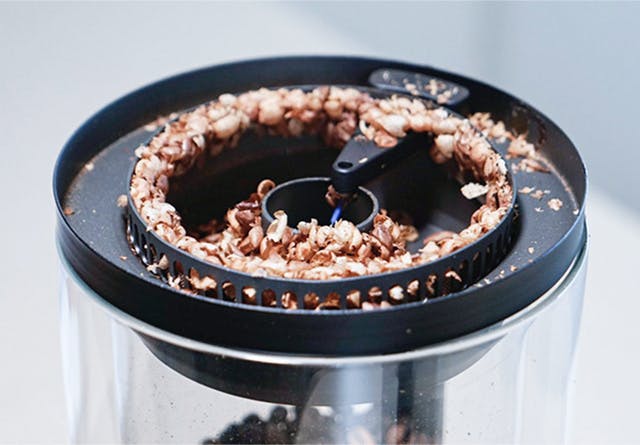 こちらの画像は、焙煎後に上部のゴムを蓋を外した所です。焙煎中に発生したチャフが自動的に収集されていますので、このチャフを取り除いて掃除して下さい。