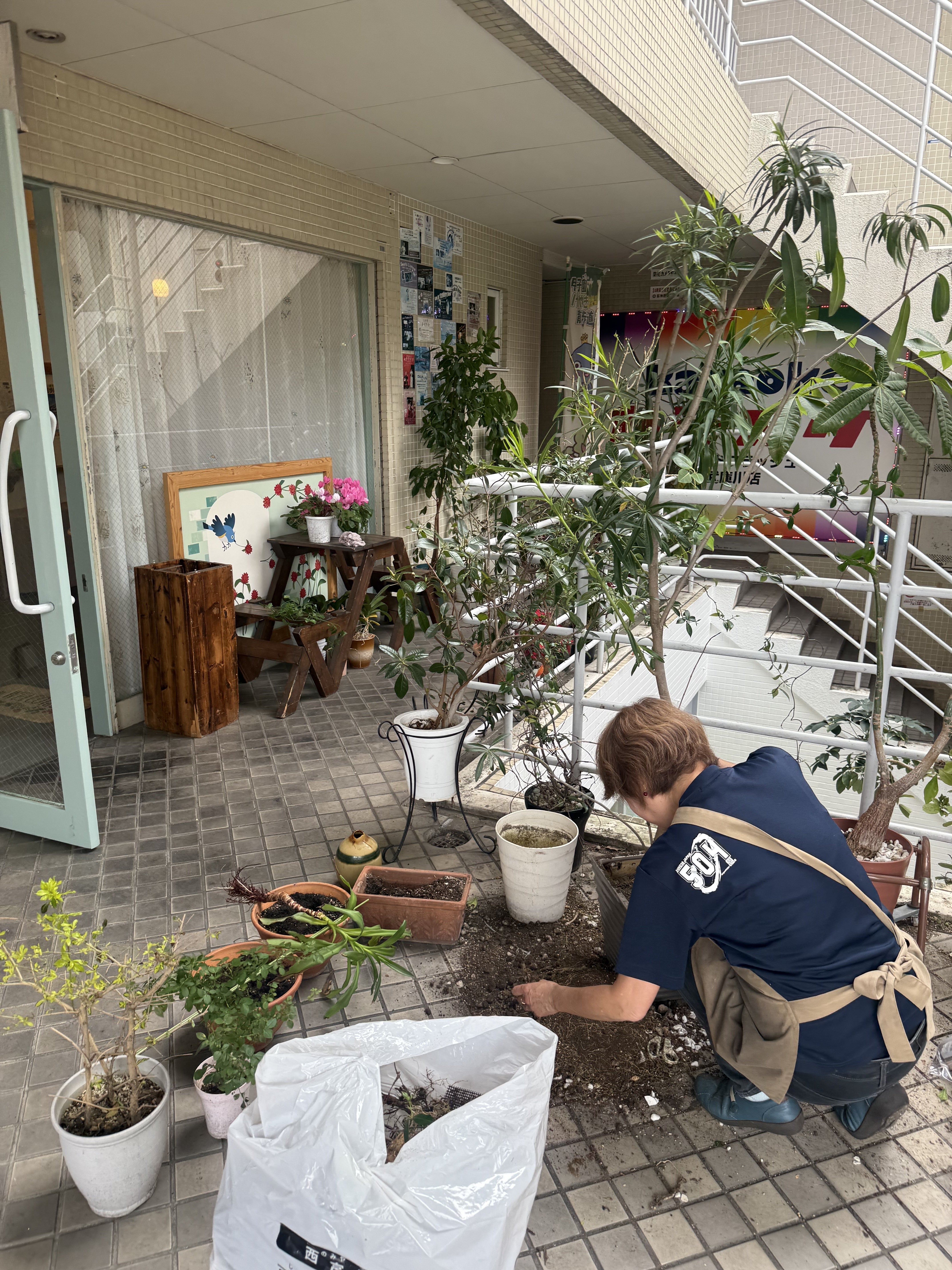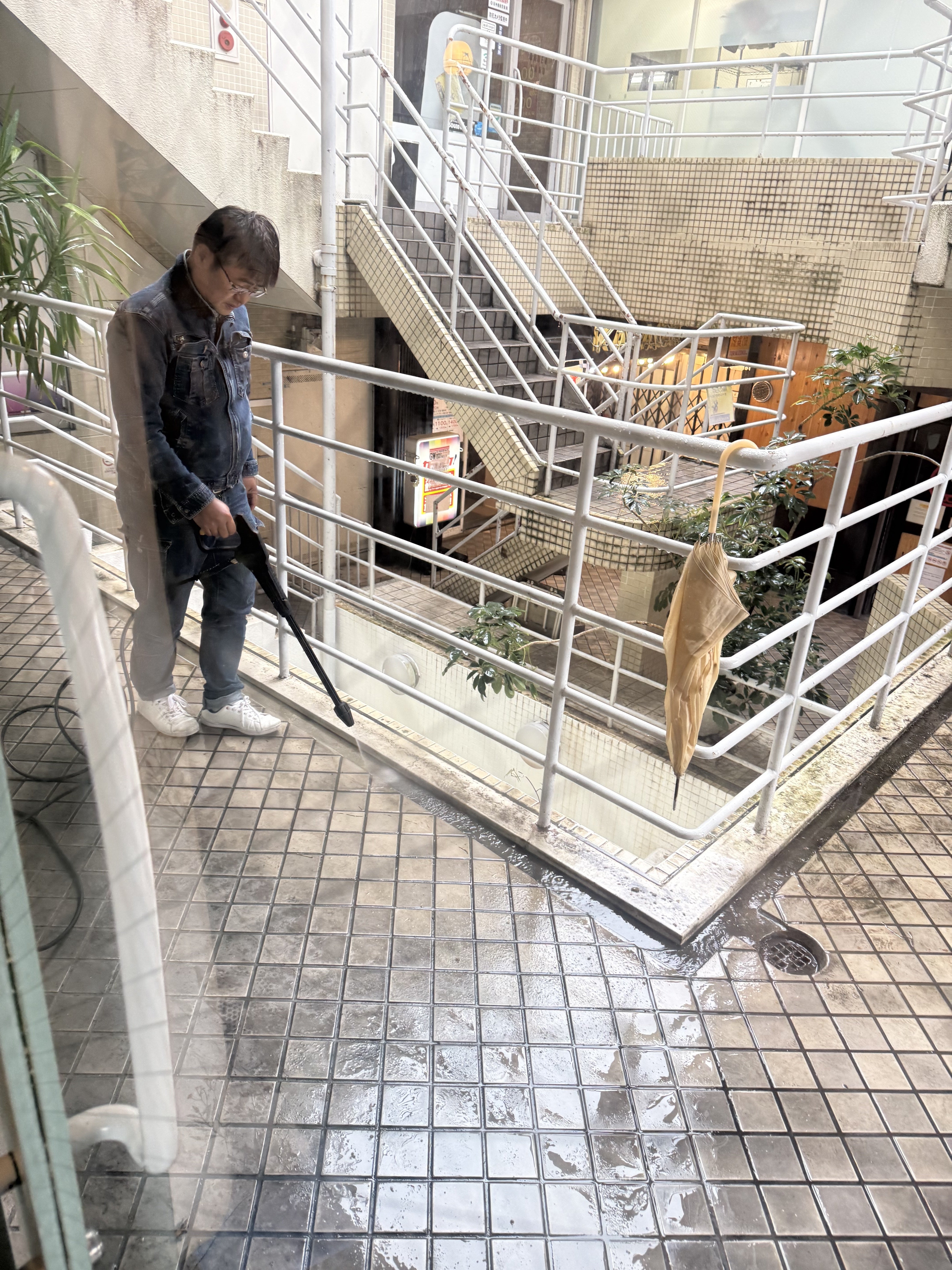 入り口周りもタイルを掃除したり植木の手入れをしたり、、