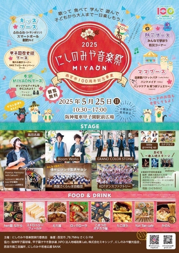 にしのみや音楽祭実行委員会代表、2025年5月に阪神甲子園駅前広場にて西宮市100周年を祝した「にしのみや音楽祭〜MIYAON」を開催。一日で約5000人を動員。