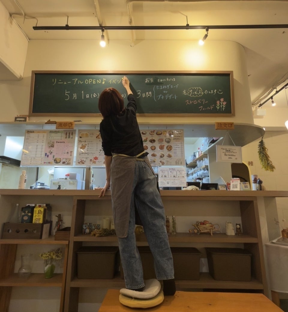 2026/03/03 00:42当初は5日間の休業予定でしたが、途中工程が変更してしまったり、深夜までのペンキ作業で体調を崩してしまったりと、、結局一週間もお休みさせていただく形になりました。カレーを食べに何人もの方が訪れてくださったのになかなか再開出来ず本当に申し訳ございませんでした。初日から2日目まで壁塗りまではワイワイ順調に、連休ともあってお手伝いしてくれる人も多く楽しくDIYできました。ところが3日目、私の注文していたペンキが床の材質に合うものでなかったことが判明し、買い直し(もちろんこれは自分のミスなので自腹です)に大阪まで(泣)でも可愛いペンキ屋さんに興奮したりも(笑)ステージ作りも職人さんお1人だから、想像以上に大変な作業で床塗りは後回しにして先に窓枠を塗ることに。長い受験生活を終えたばかりで、卒業式間近の高校生たちが連日朝早くから夜遅くまでお手伝いに来てくれました。。。なんていい子たちなんだと志麻おばさんは何度もウルウルしておりました。本当にありがとう!!卒業おめでとう!!そしていよいよ床塗りです。コンクリートモルタル風というDIY初心者にはかなり難題な手法。。3色の色を交互に塗り、スポンジや霧吹きなどでぼやかしていくのですが、やればやるほどどれが正解か分からず、夜もうなされて寝不足になり頭痛もひどくなりながら3日がかりで取り組みました。苦労した分、完成の喜びは倍増!!唯一無二のおしゃれな床に大変身しました!!ステージもいい感じになってる!!見た目なんだか怪しいけど(笑)最強メンバーだー!!最終日はドロドロになった椅子やテーブルをみんなで磨いてピカピカに⭐︎3/2営業再開当日の朝一番に「リニューアルおめでとう!」とお花を持ってきてくださった方が!!「完成までまだ半分!これからですよ!!」と言ったら驚かれてました(笑)でもみんなでこの一週間の頑張ったご褒美のようでとっても嬉しかったです。ありがとうございました!! もっと見る